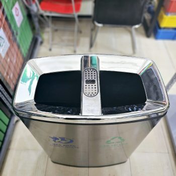 Thùng rác inox có gạt tàn thuốc, lưới chống xả rác trên gạt tàn và có cửa xả rác phía trước thuận tiện cho việc xả rác
