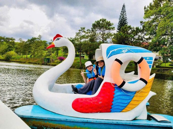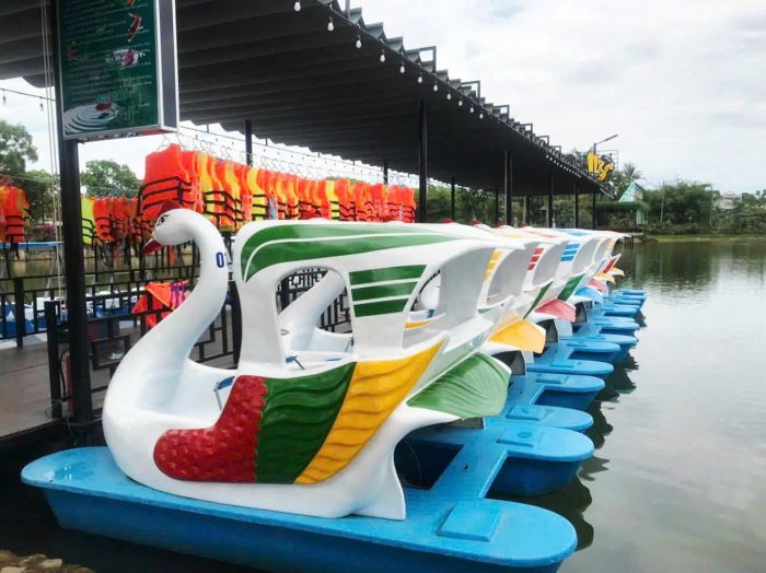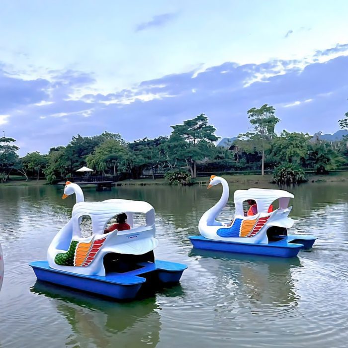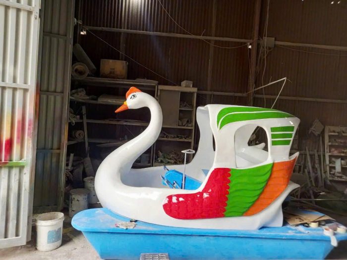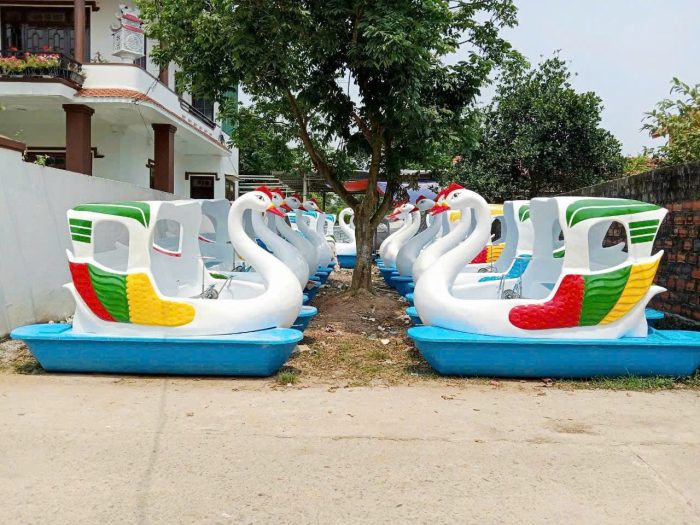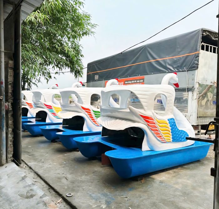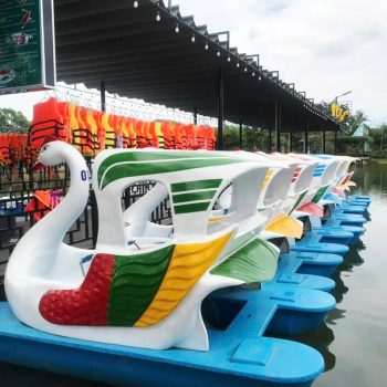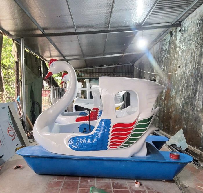 Thiên nga đạp nước composite loại cơ bản Loại đạp chân: 2 người đạp Số chỗ ngồi: 2 người lớn và 2 trẻ em Kích thước: DxR: 3600× 1800(mm) Chất liệu: Nhựa Composite Bảo hành: 24 tháng