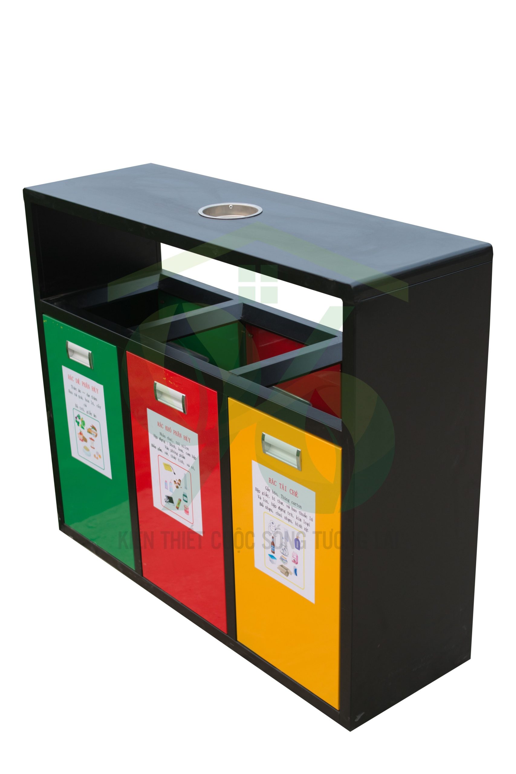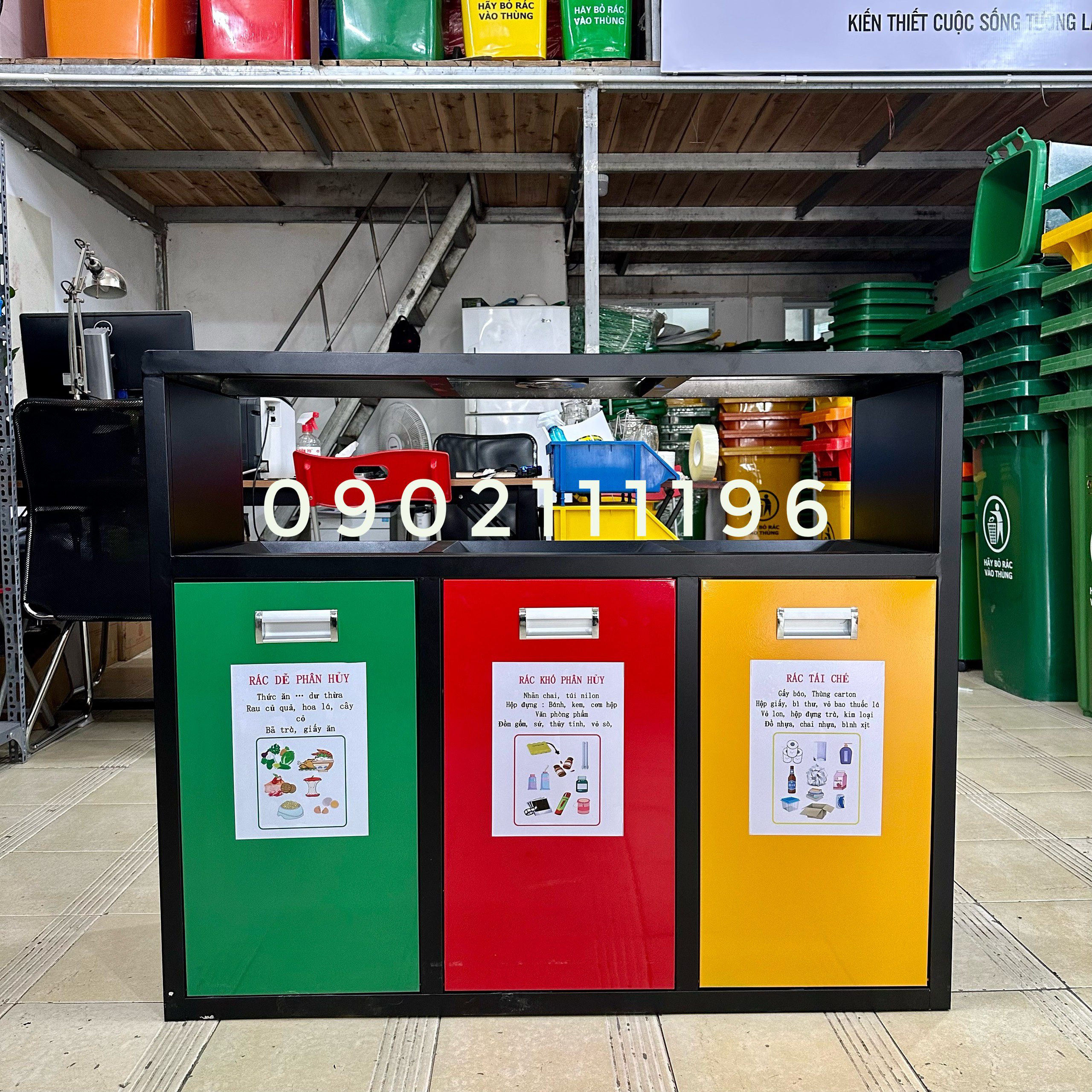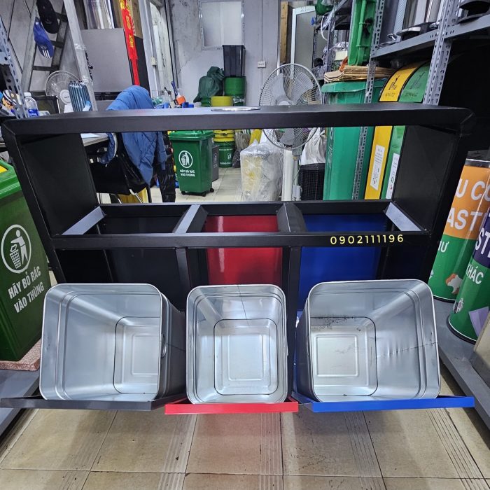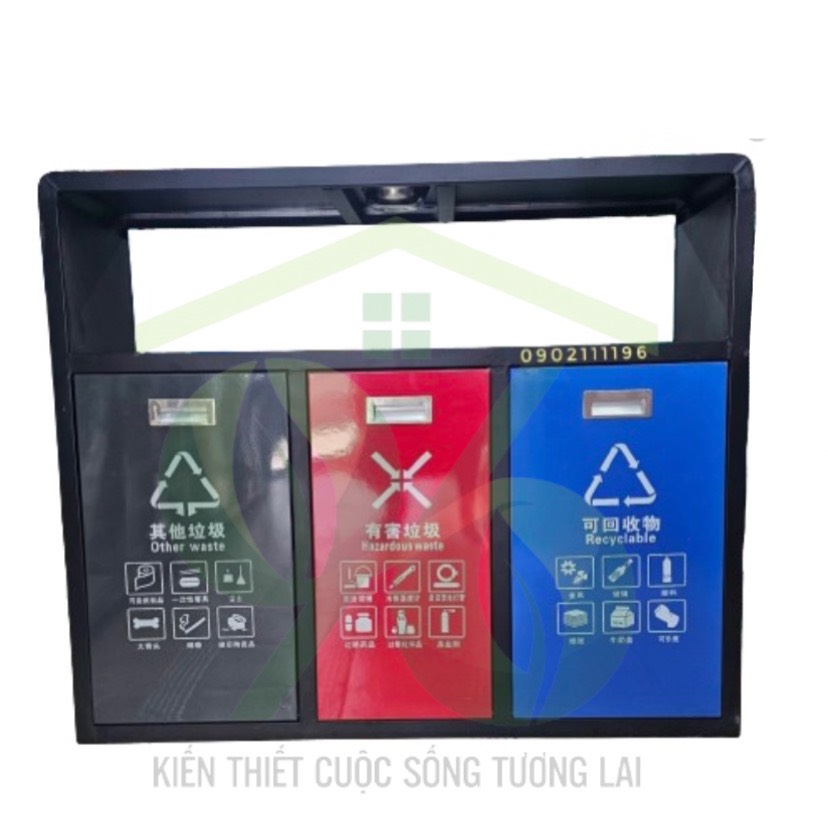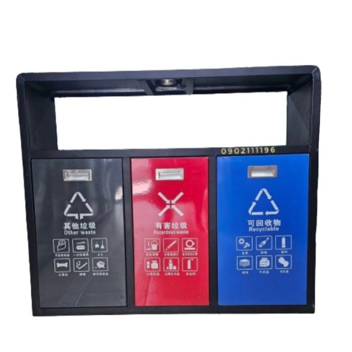 Thùng phân loại rác 3 ngăn khung thép sơn tĩnh điện