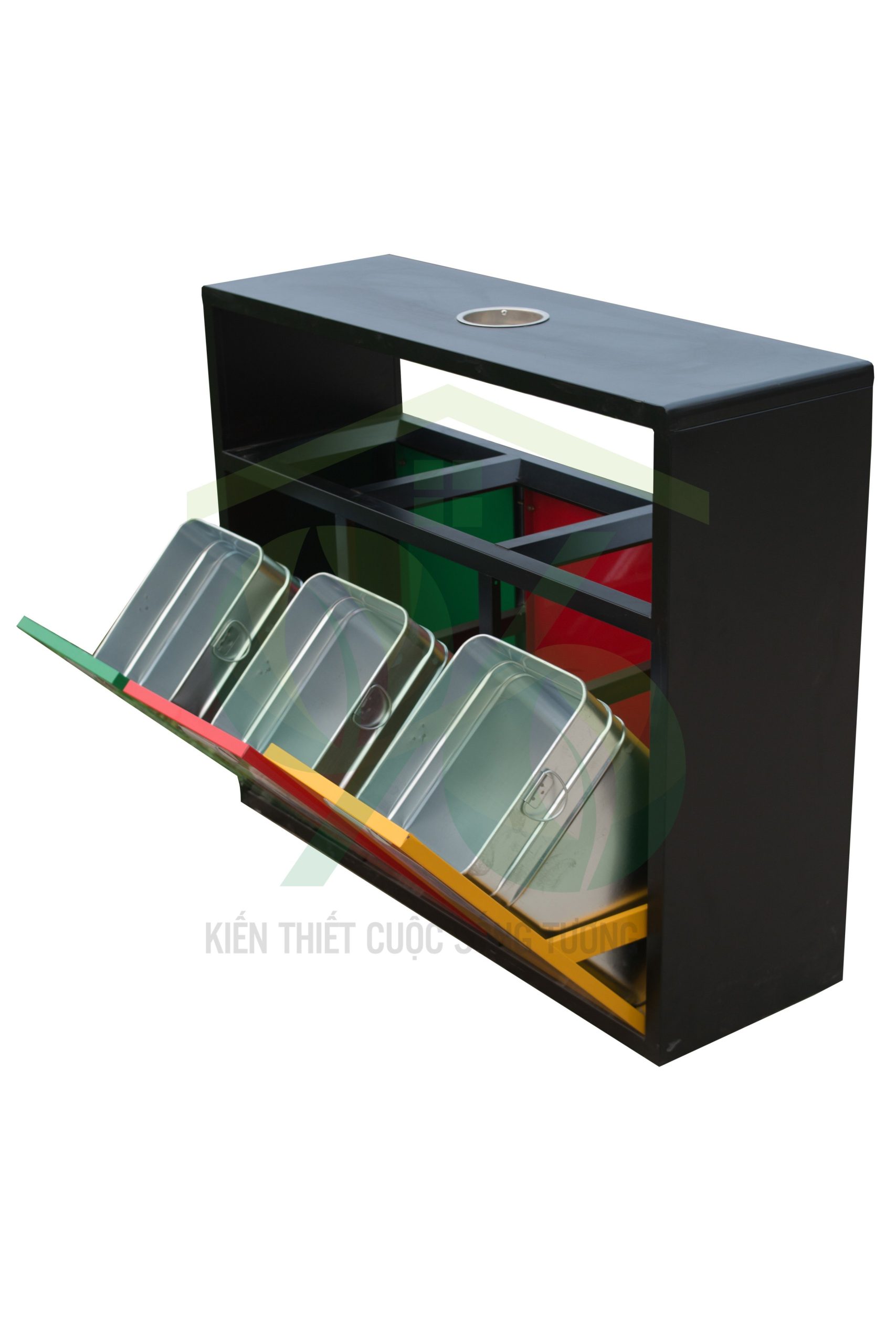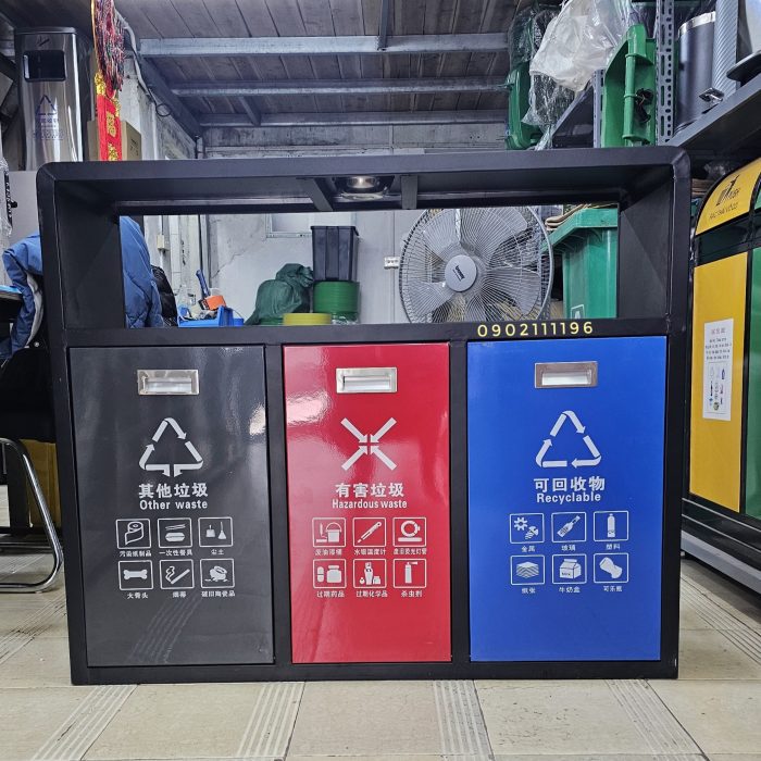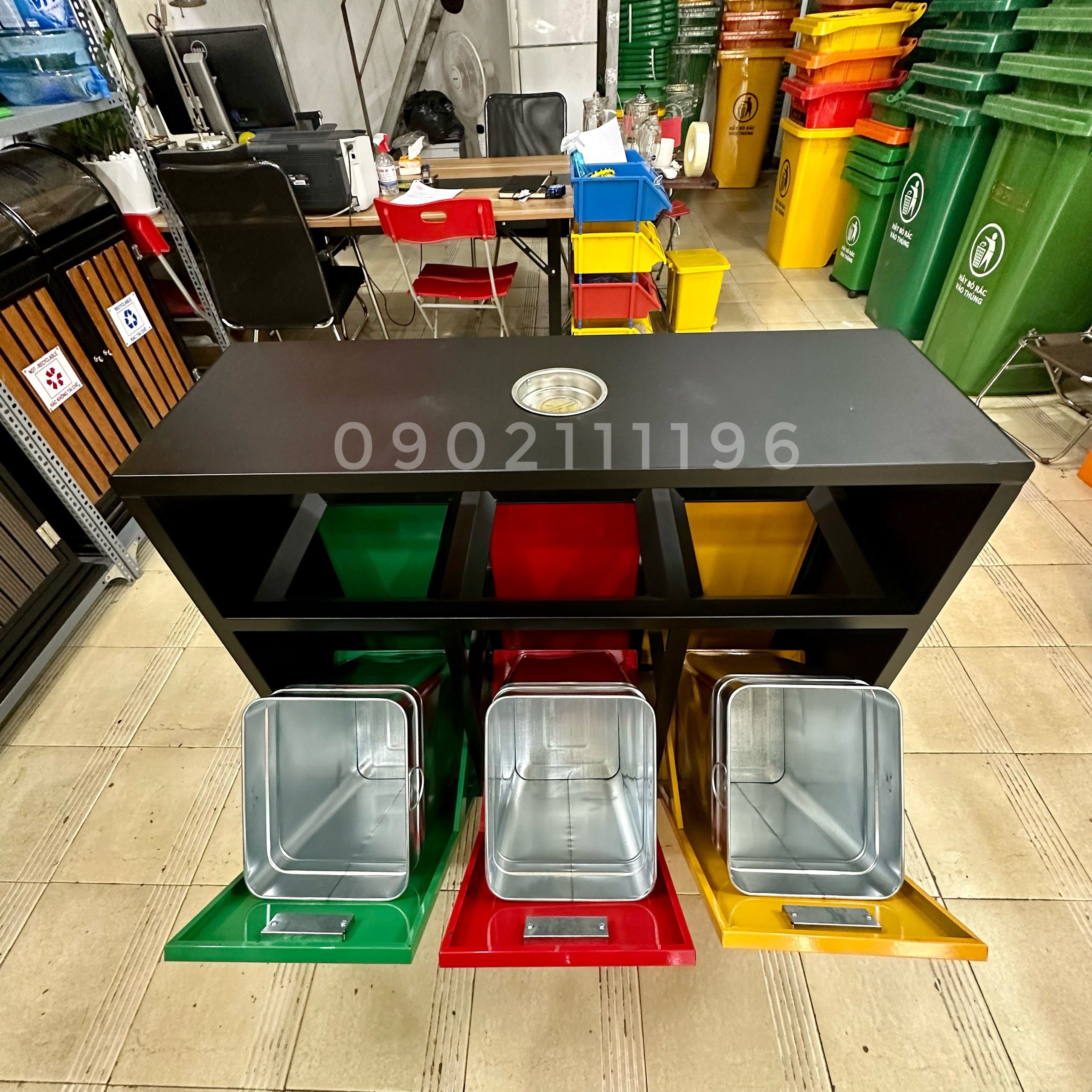 Thùng phân loại rác 3 ngăn khung thép sơn tĩnh điện