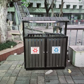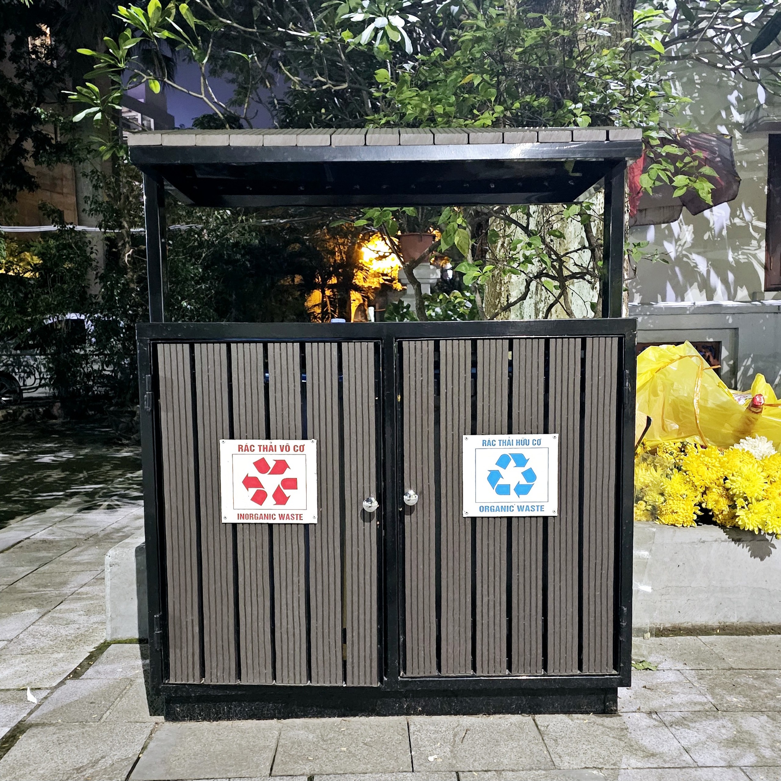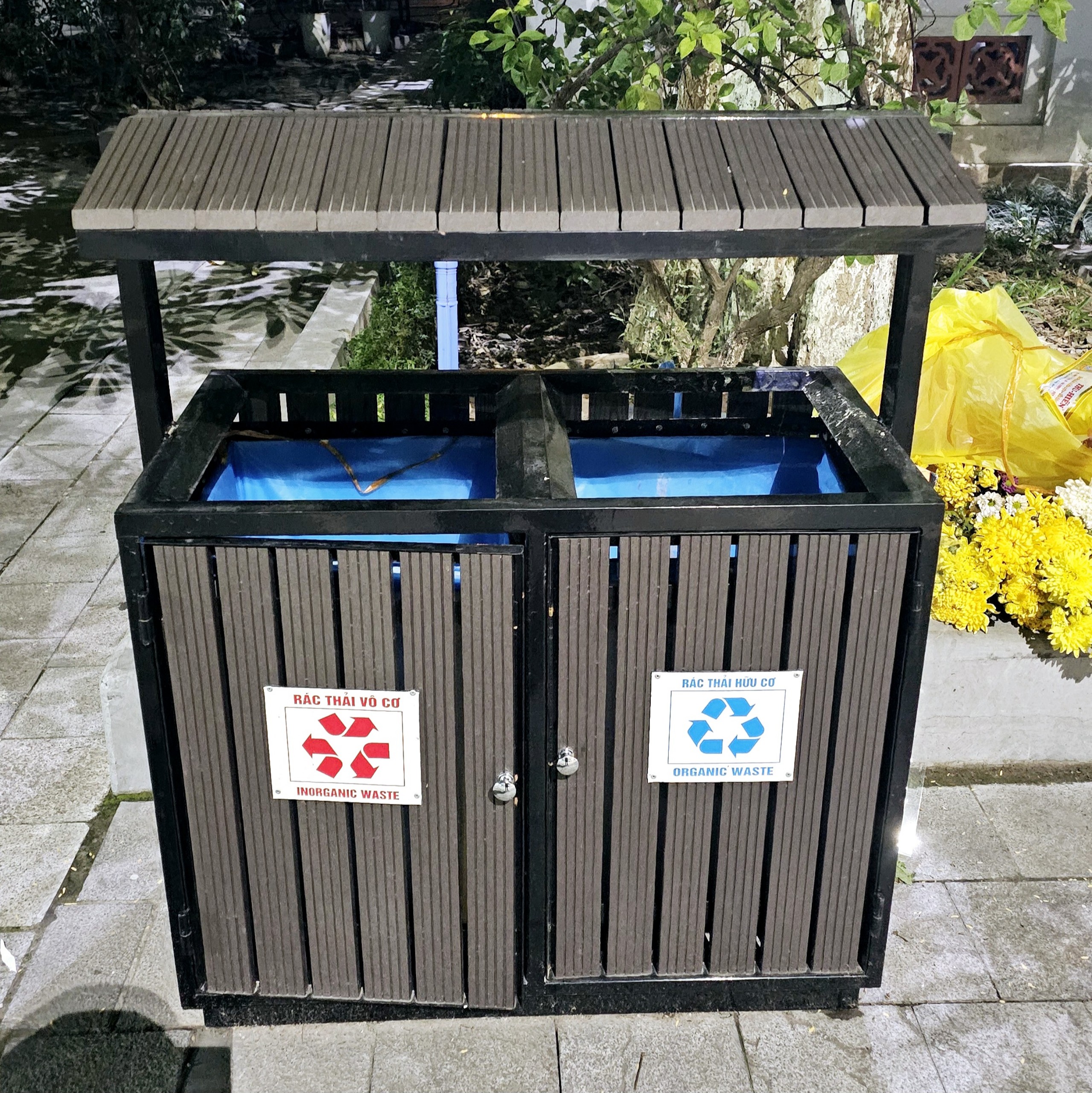 Bên trong thùng làm bằng tôn hoa không dễ bám bẩn từ rác thải và có thể dễ dàng vệ sinh sạch sẽ bằng nước.