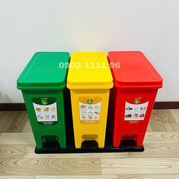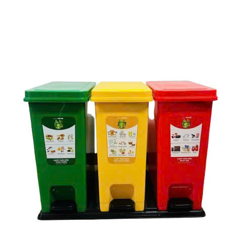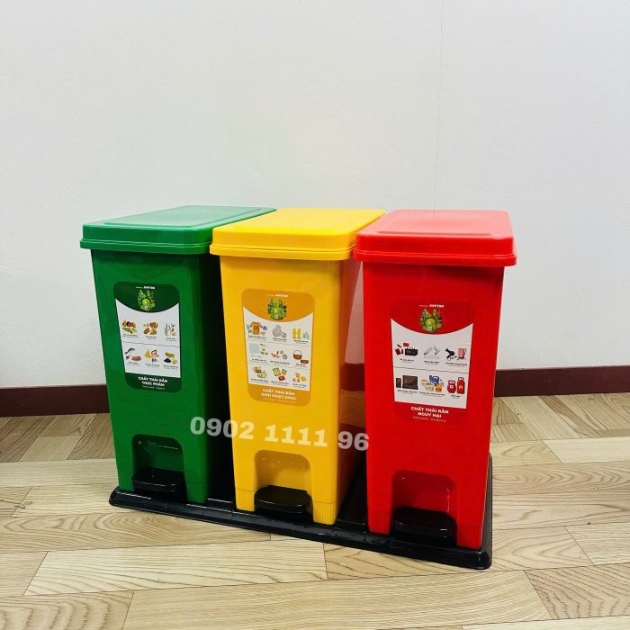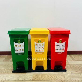 Với thiết kế có 3 ngăn 3 màu khác nhau giúp phân loại rác thông thường (hữu cơ) và rác nguy hại (Nhựa) và loại khác.