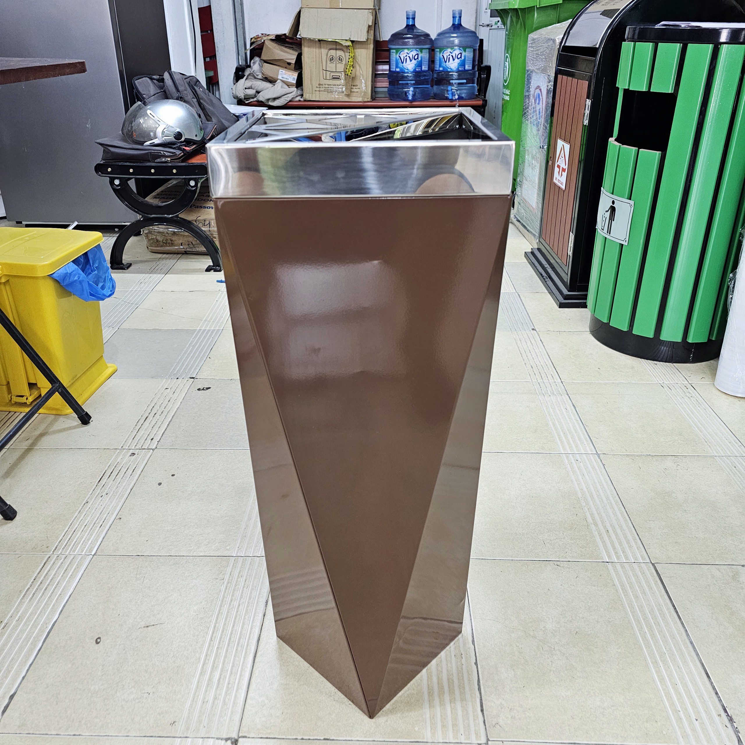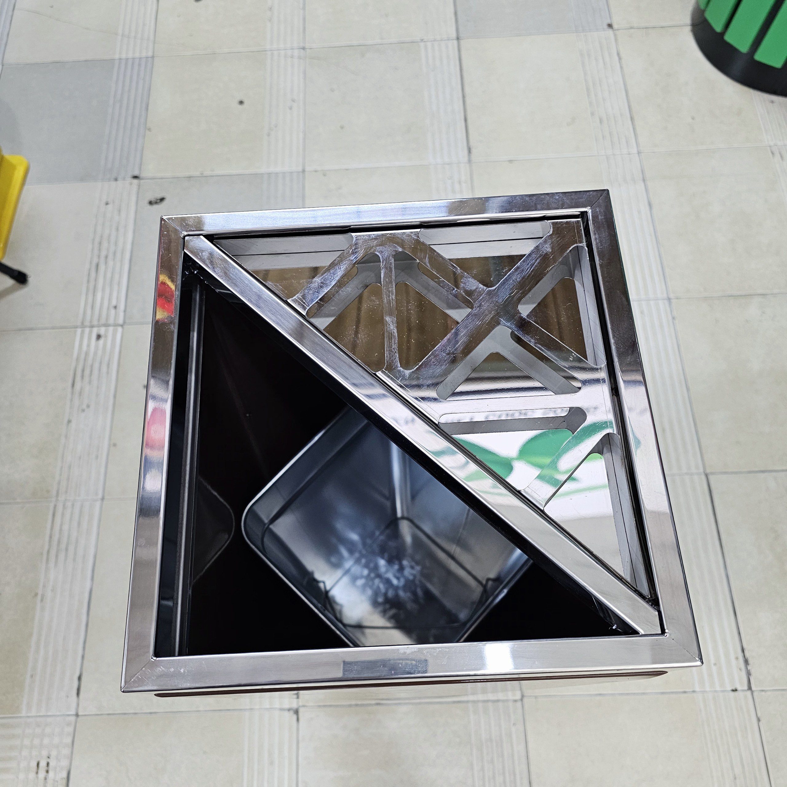 Thùng rác inox vuông có gạt tàn được làm từ chất liệu tấm điện phân sơn sấy sang trọng, sạch sẽ, độ bền cao.