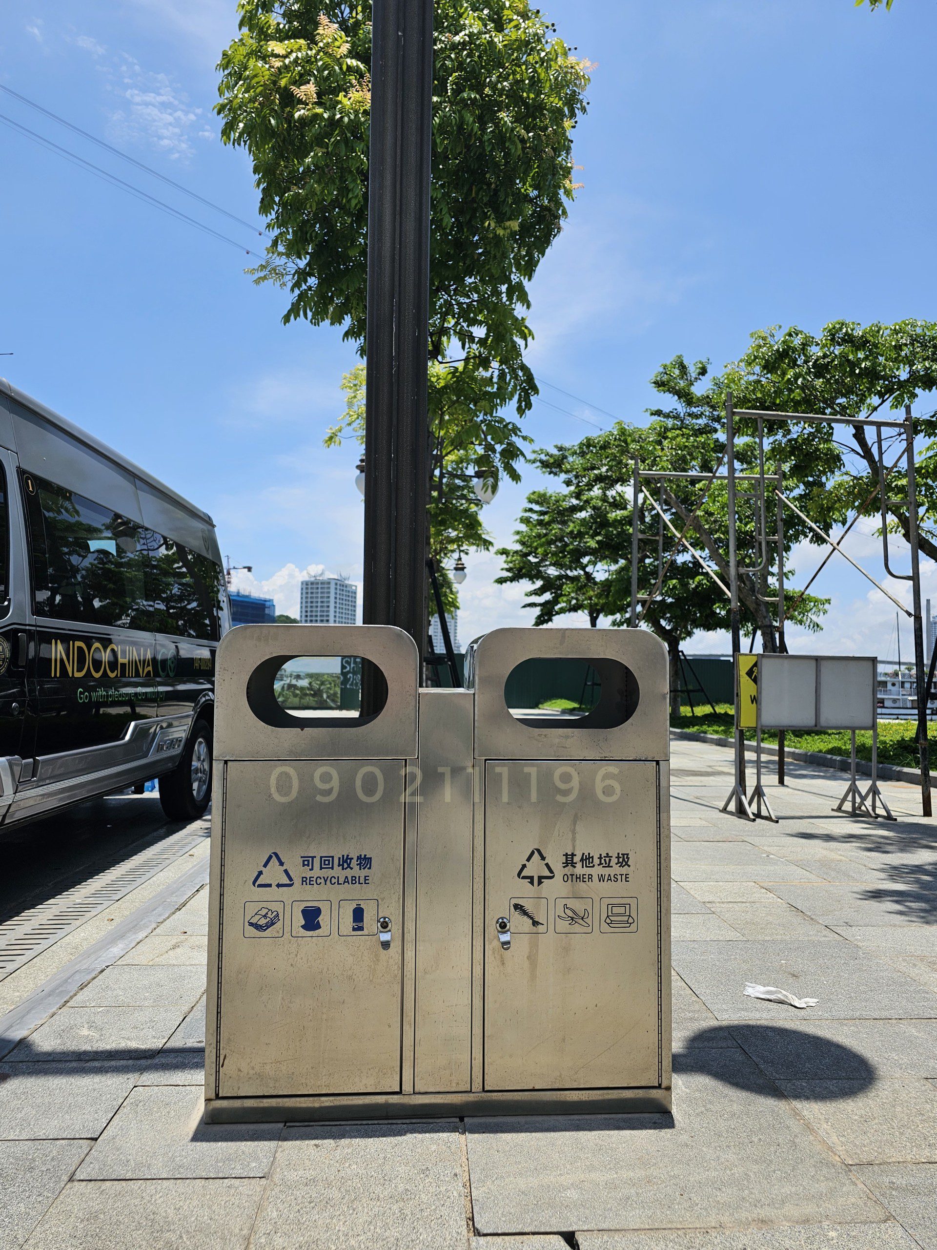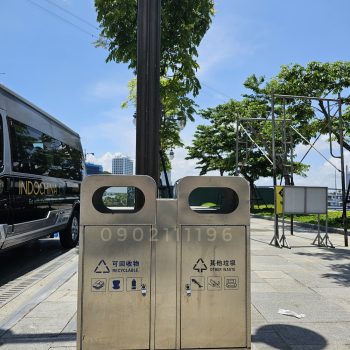 Thùng rác inox có gạt tàn thuốc, lưới chống xả rác trên gạt tàn và có cửa xả rác phía trước thuận tiện cho việc xả rác