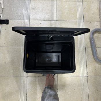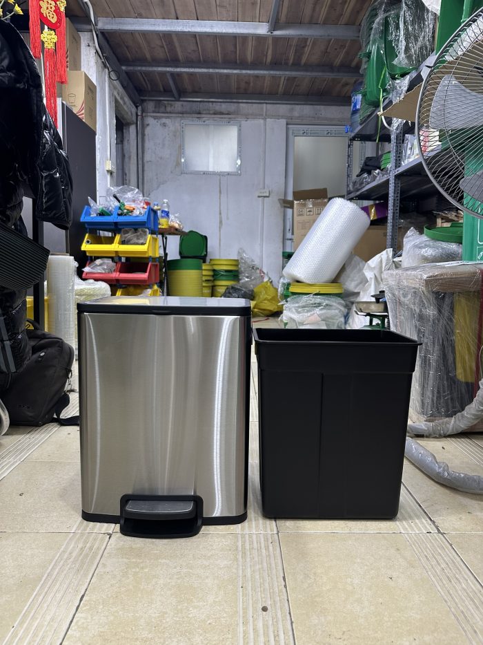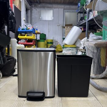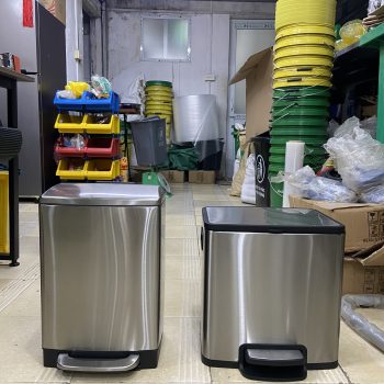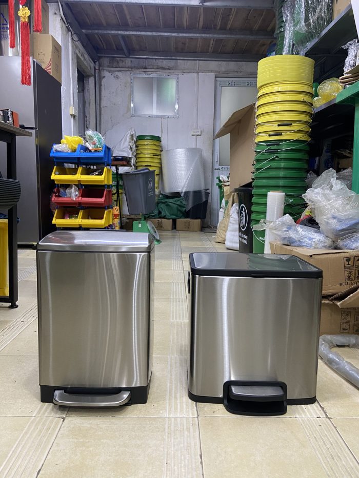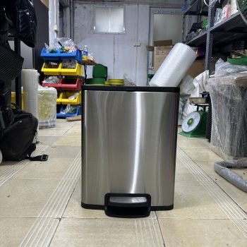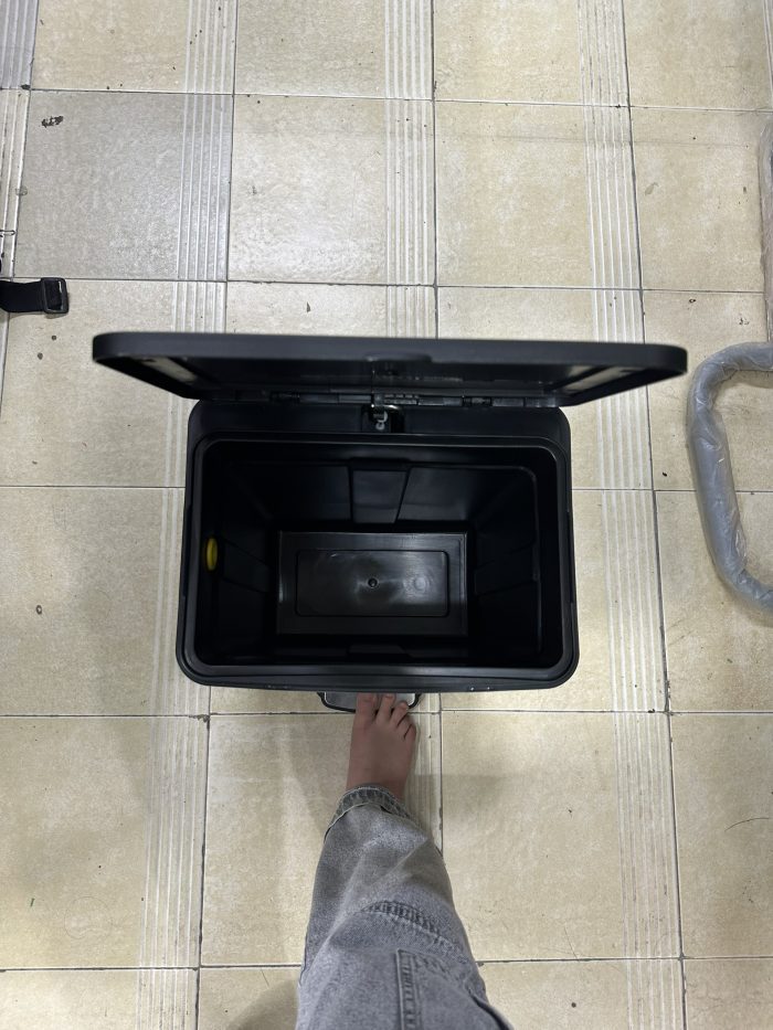 Thùng dạng hình chữ nhật vuông, nắp thùng rác dạng đạp chân (pedal) nên chỉ cần đạp nhẹ là mở nắp