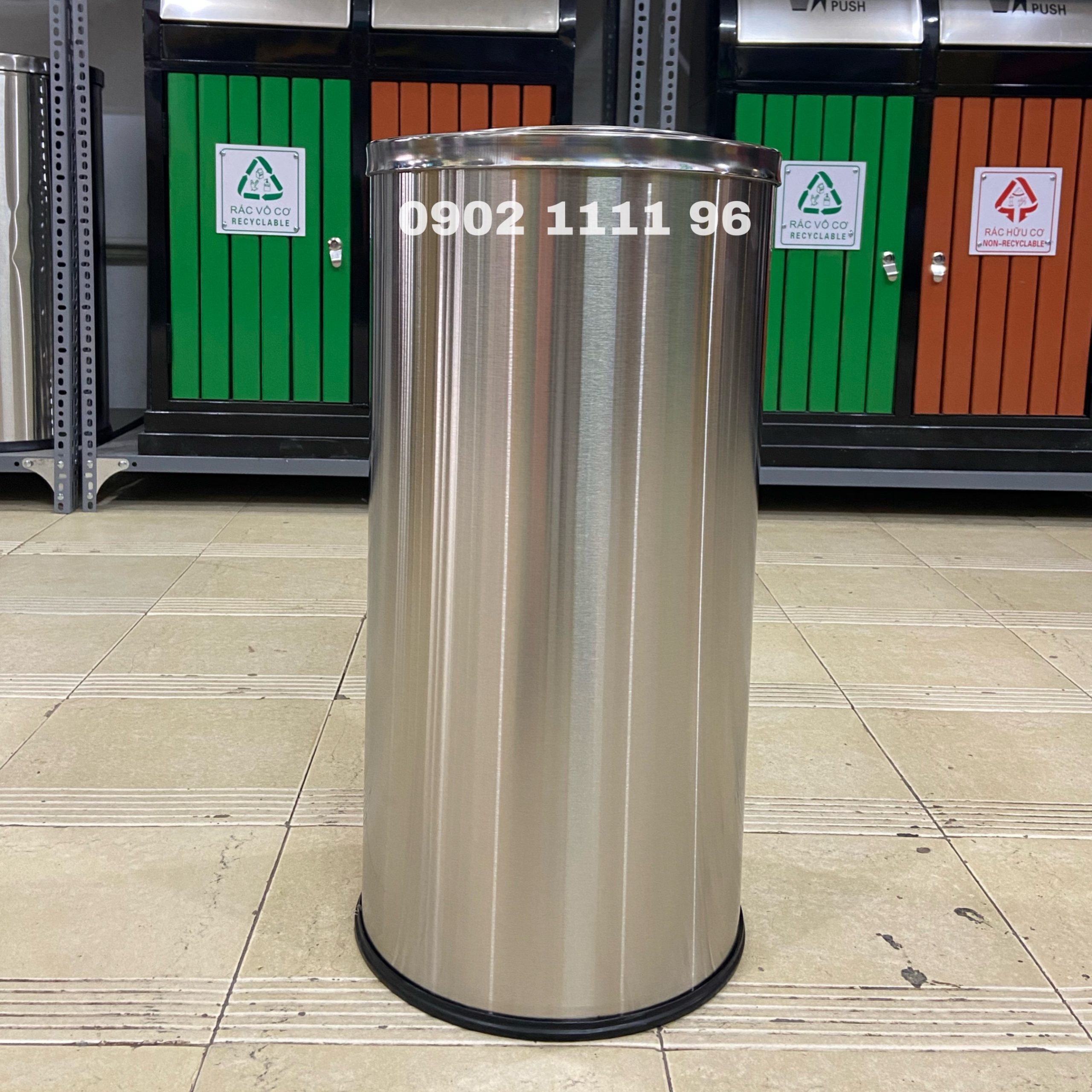 Sản phẩm có hình trụ tròn kết hợp với đế thùng làm từ cao su màu đen giúp tăng khả năng bám dính, được làm từ chất liệu inox 304 giúp cho tuổi thọ của thùng rác inox nắp lật có độ bền cao, khả năng chống hoen rỉ tốt, chịu được sự tác động của môi trường khắc nghiệt.