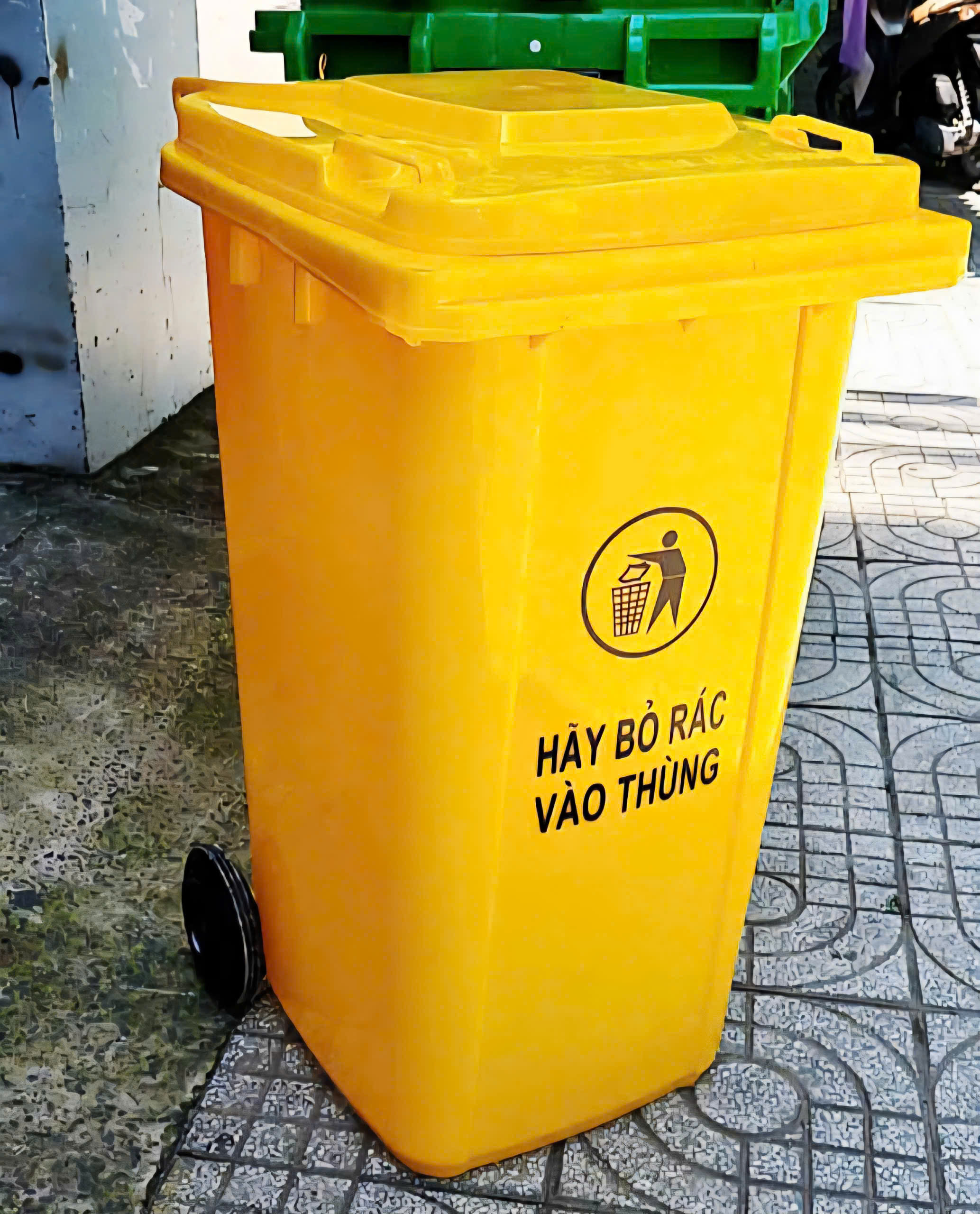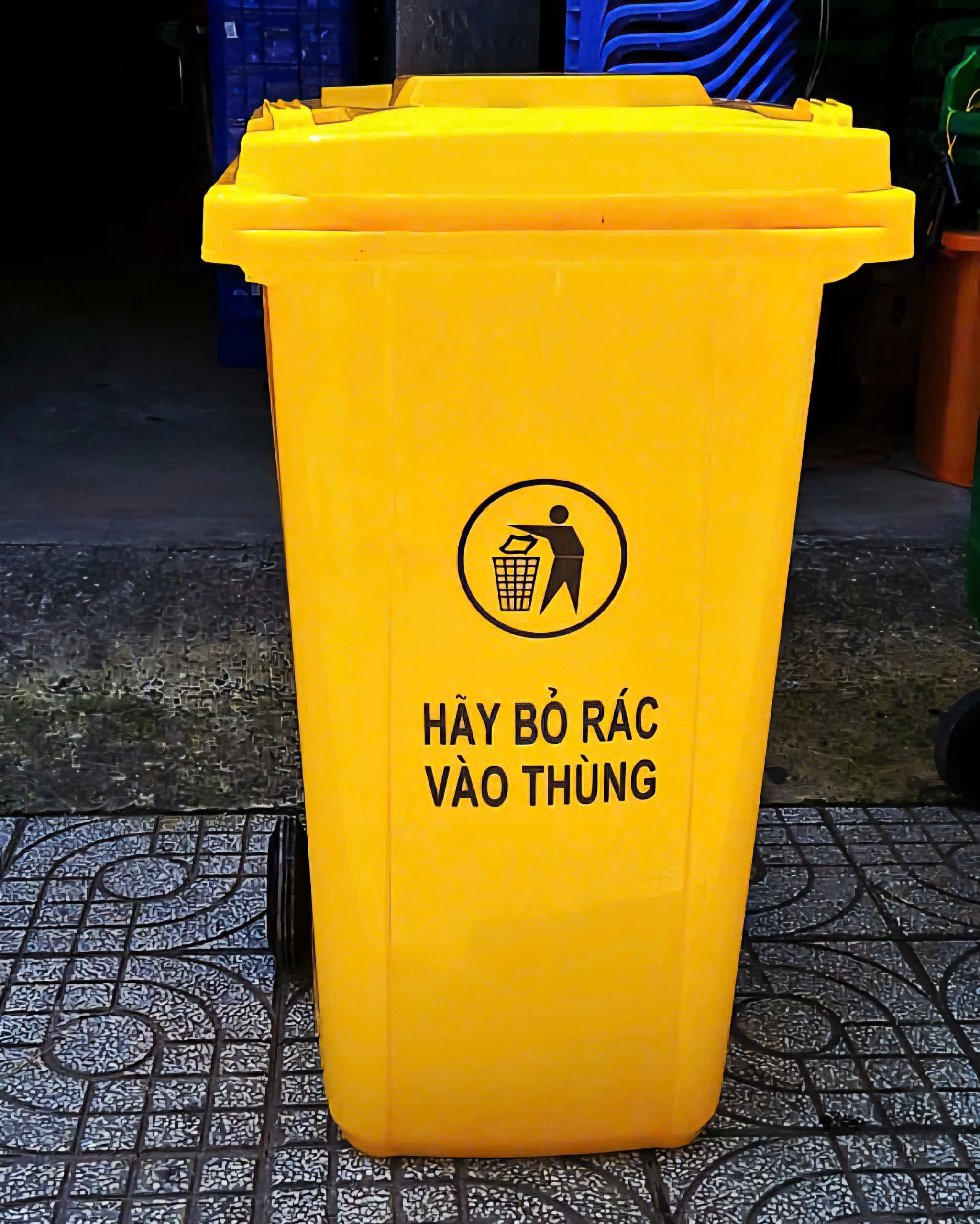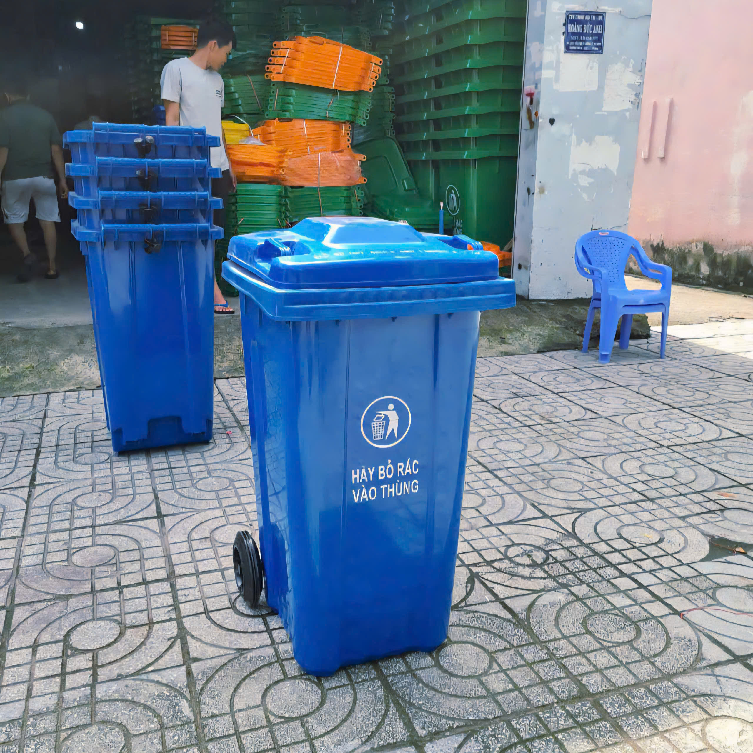 Phụ kiện: 01 nắp kín, 02 bánh xe cao su đúc đặc