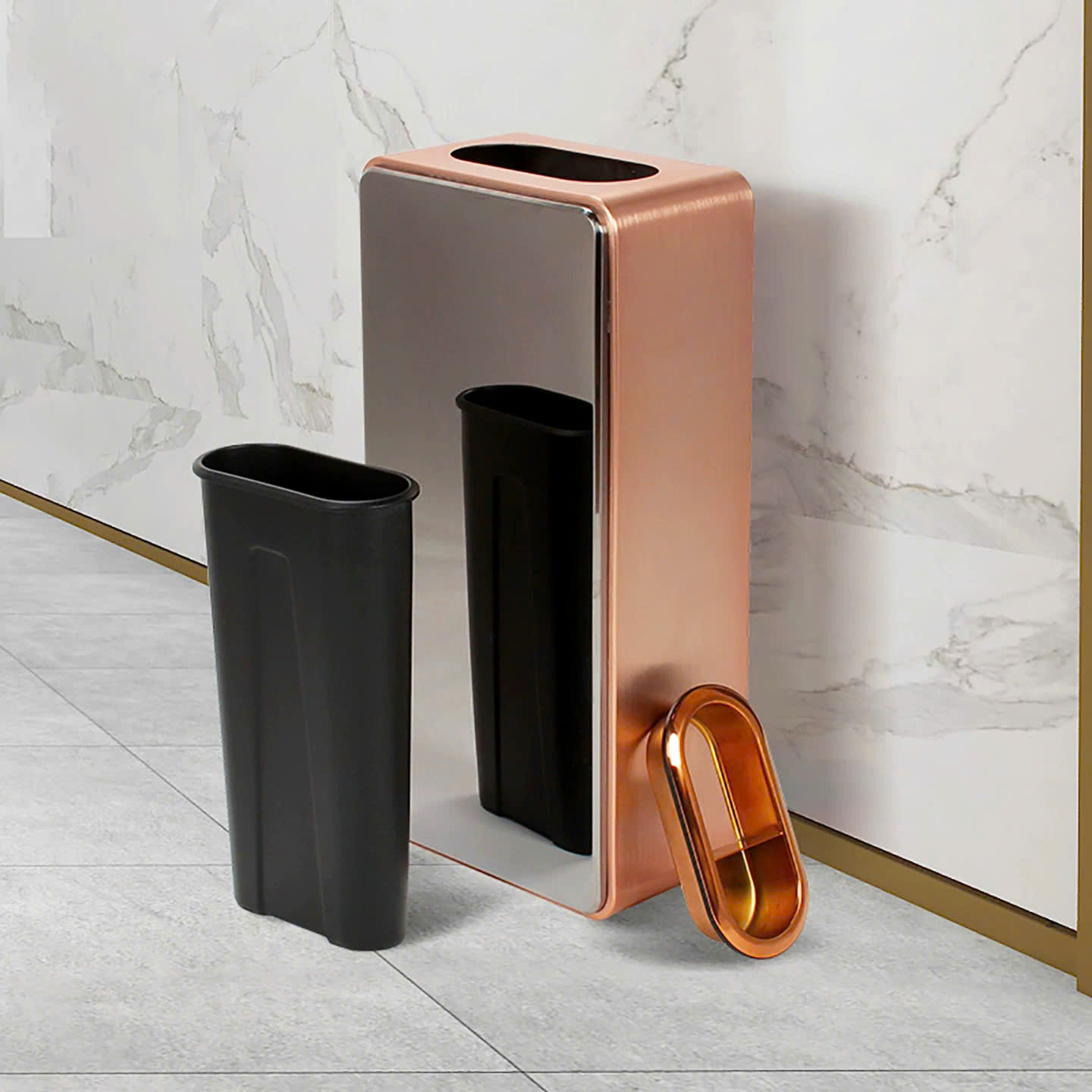 Thùng rác sảnh khách sạn mặt gương cao cấp