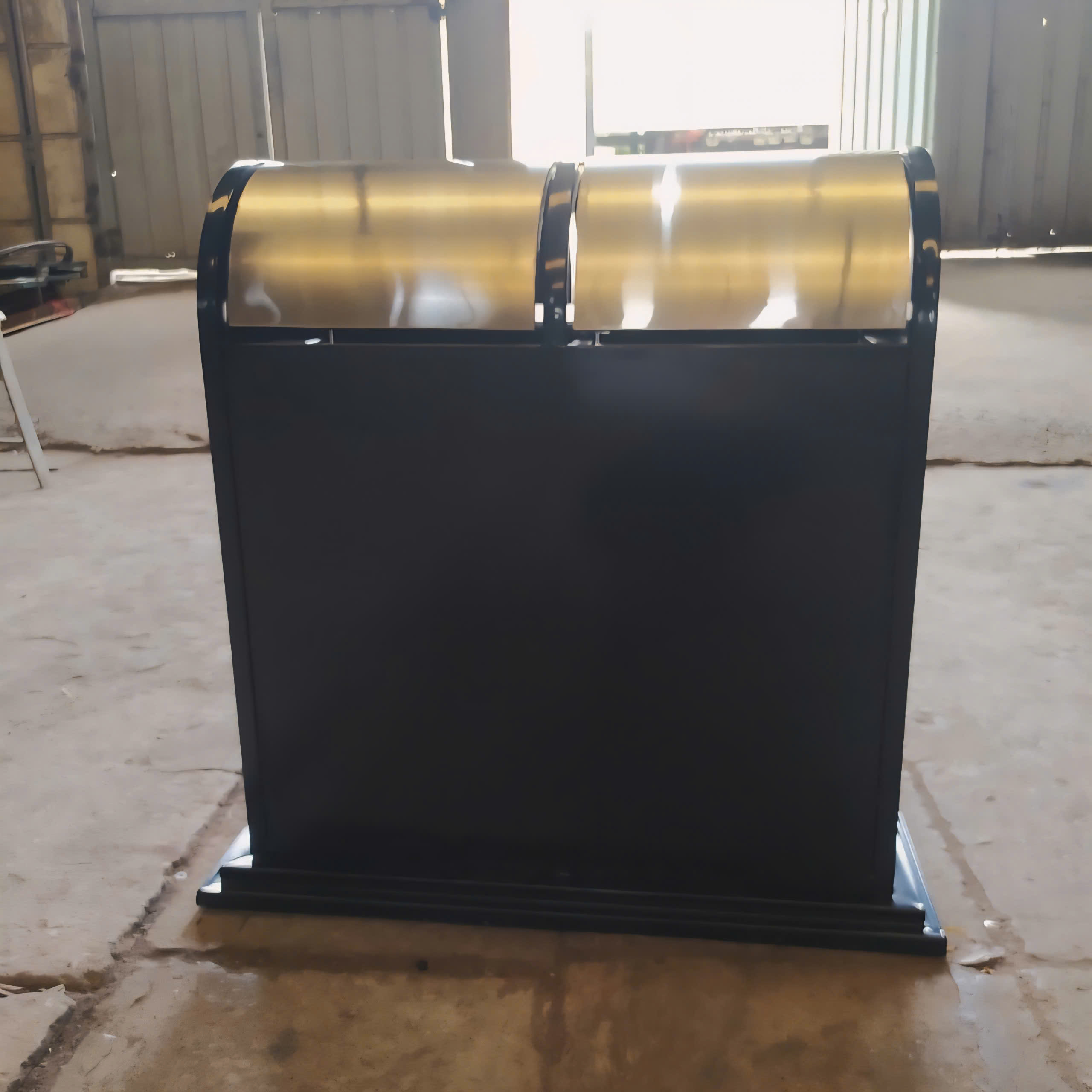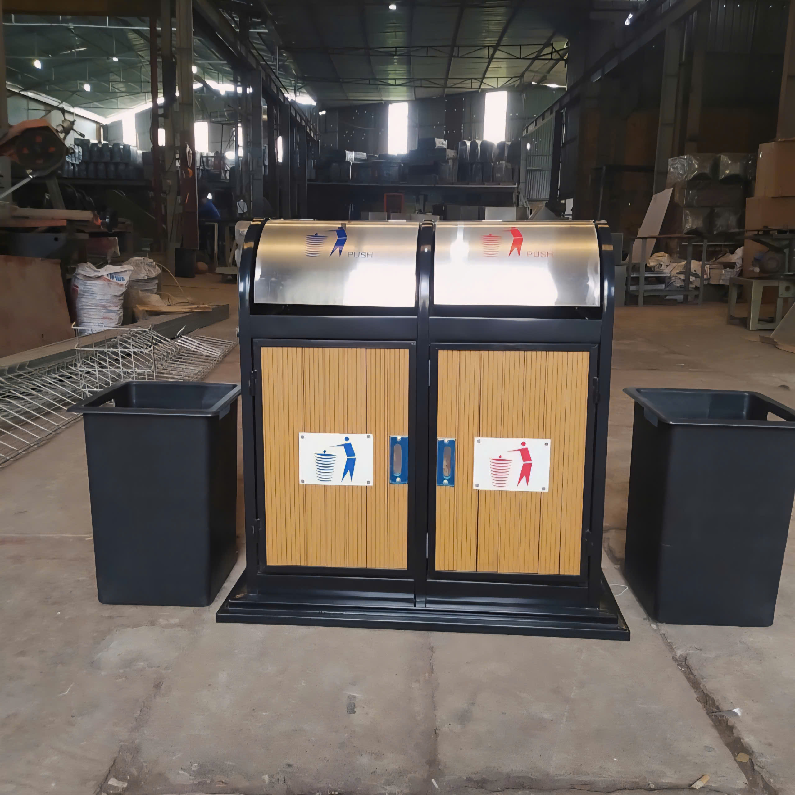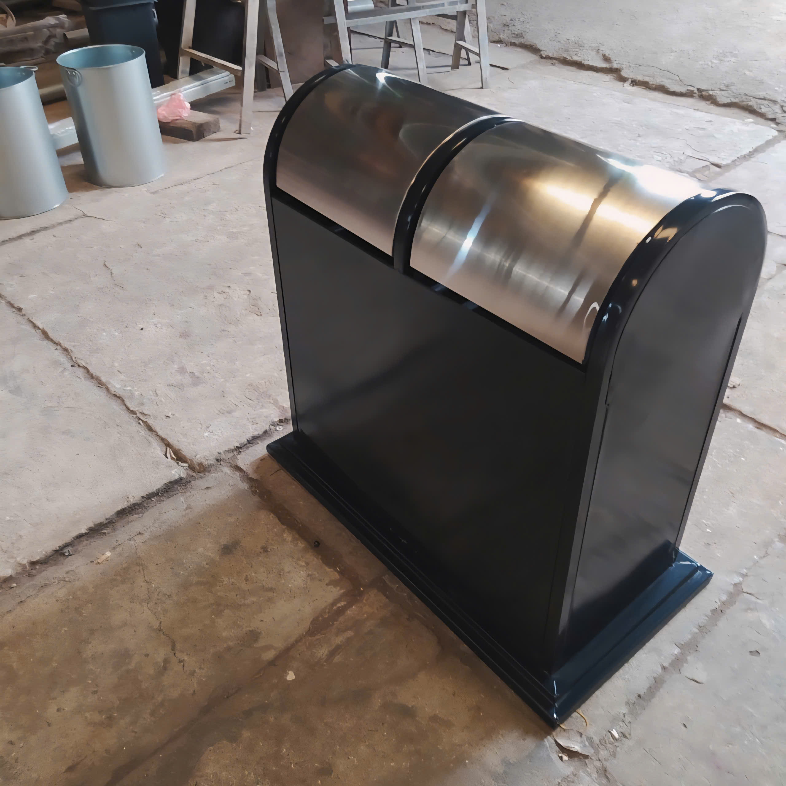 Thùng rác thép 2 ngăn nắp lật ngoài trời