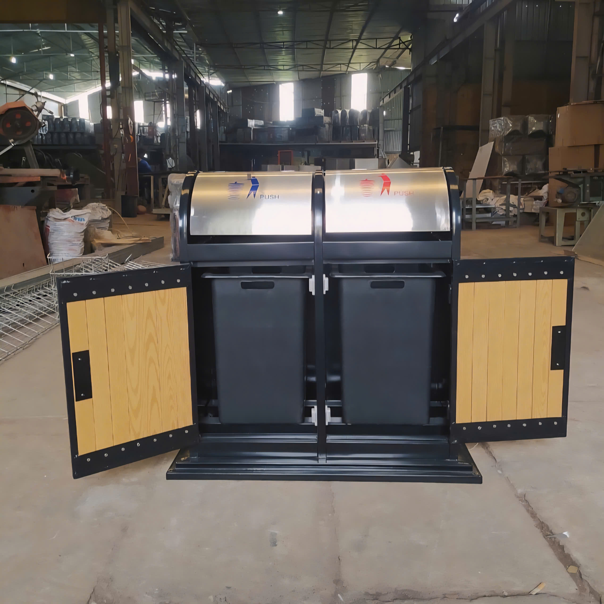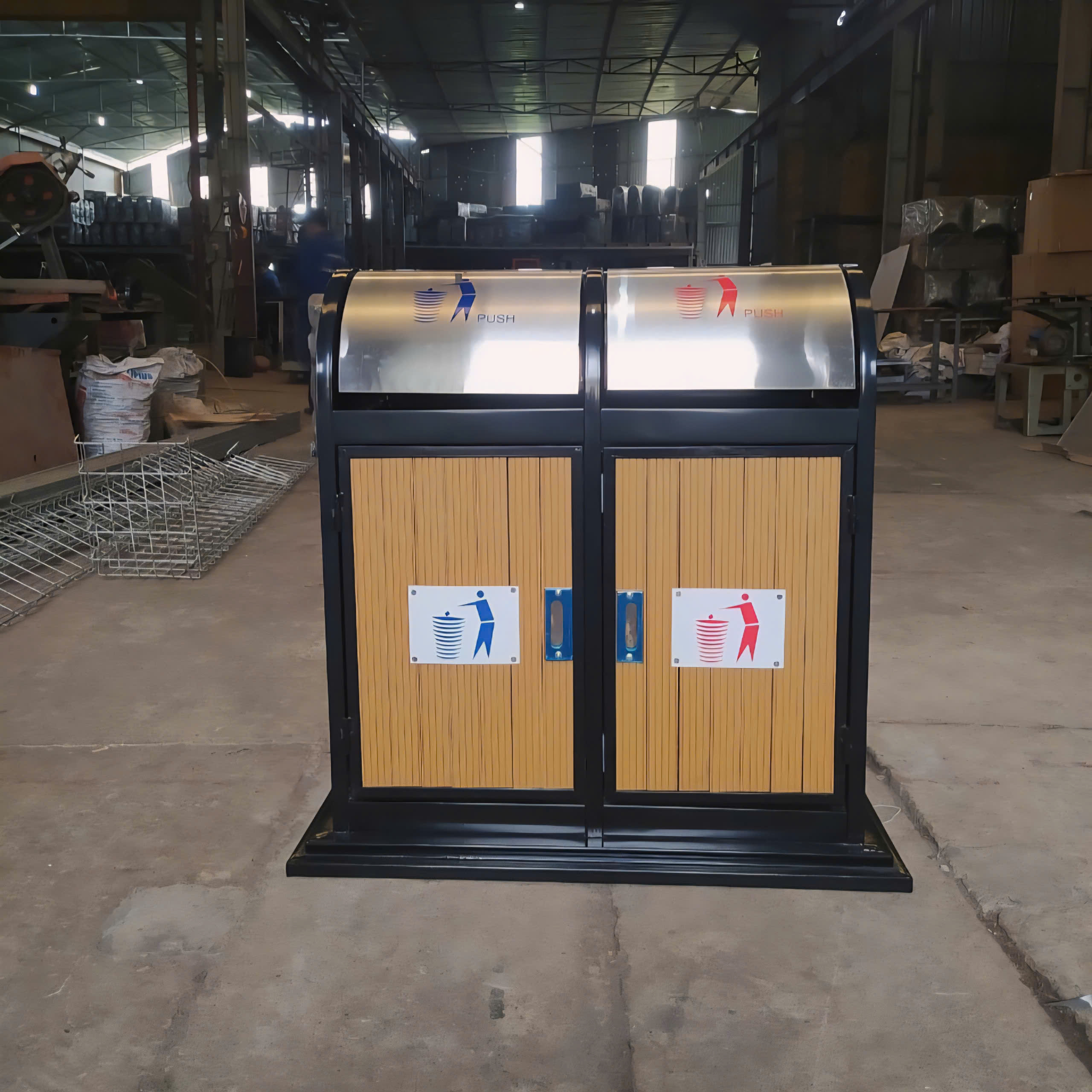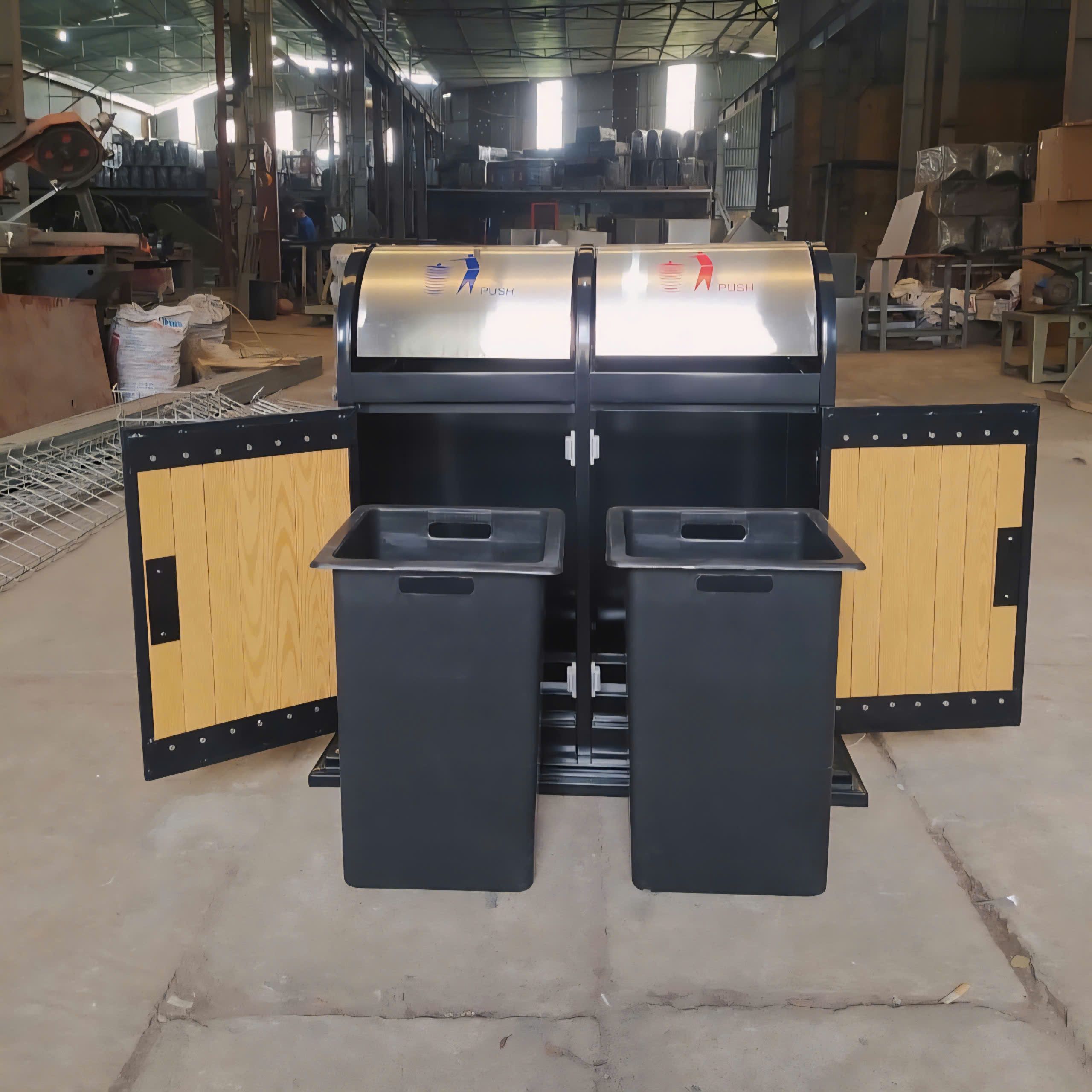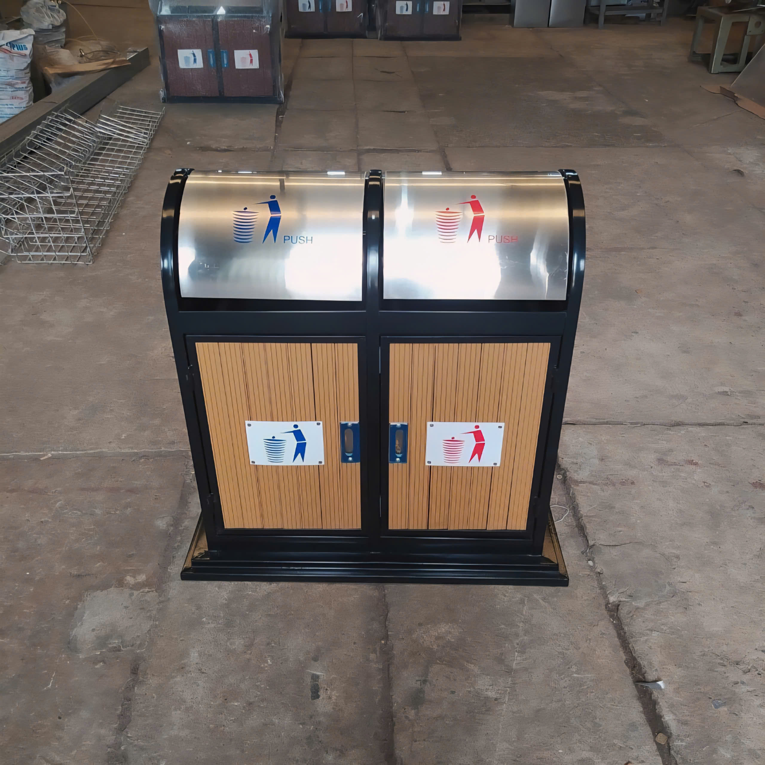 Thùng rác thép 2 ngăn nắp lật ngoài trời