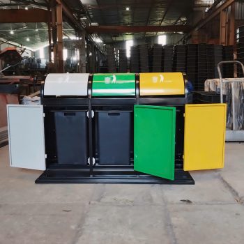 Thùng rác công cộng thép sơn tĩnh điện 3 ngăn