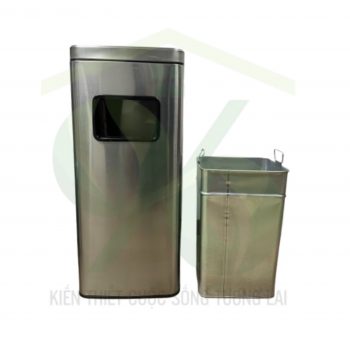 Thùng Inox 02 ngăn có gạt tàn mái phẳng