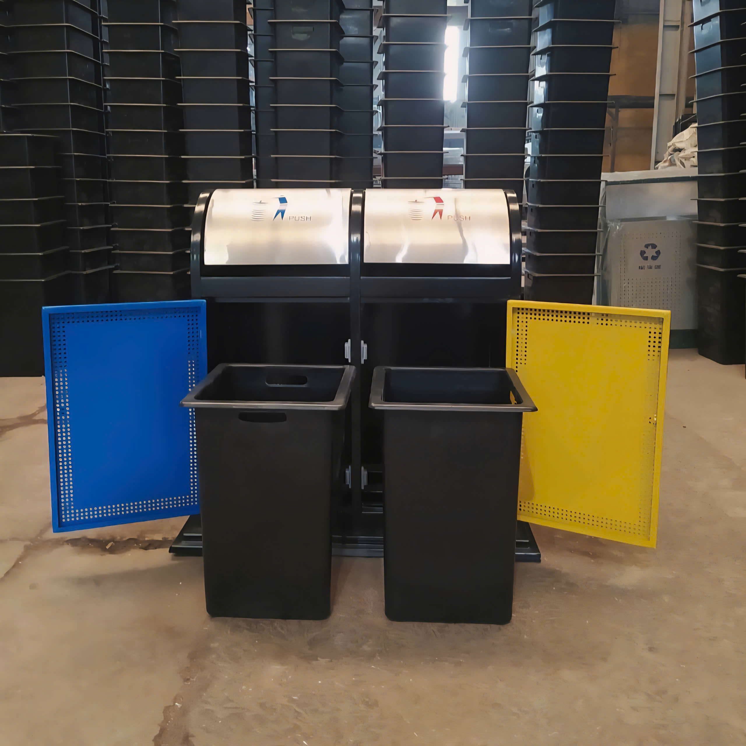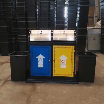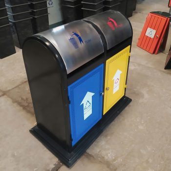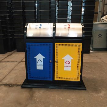 Thùng rác thép sơn tĩnh điện 2 ngăn nắp lật