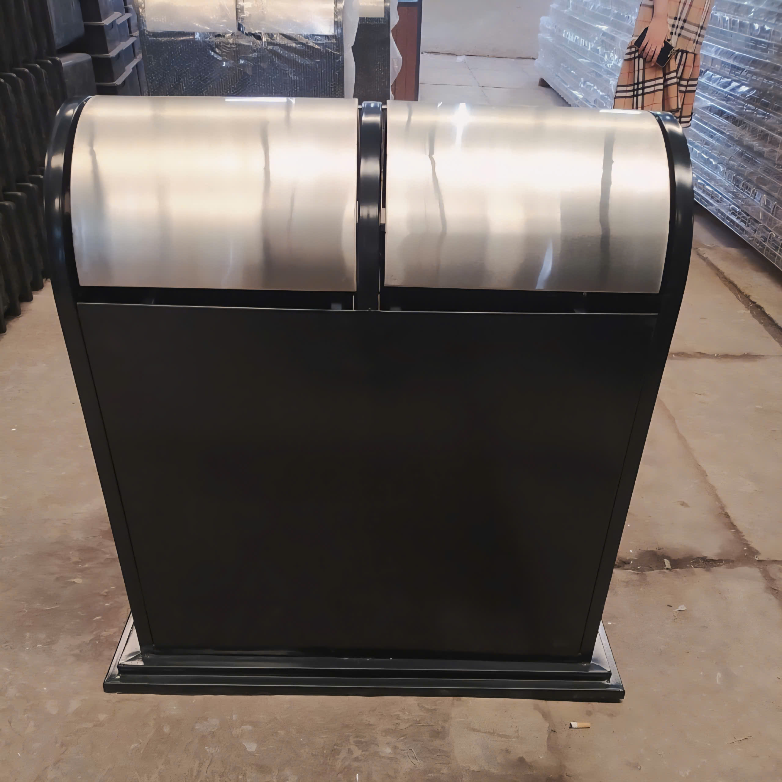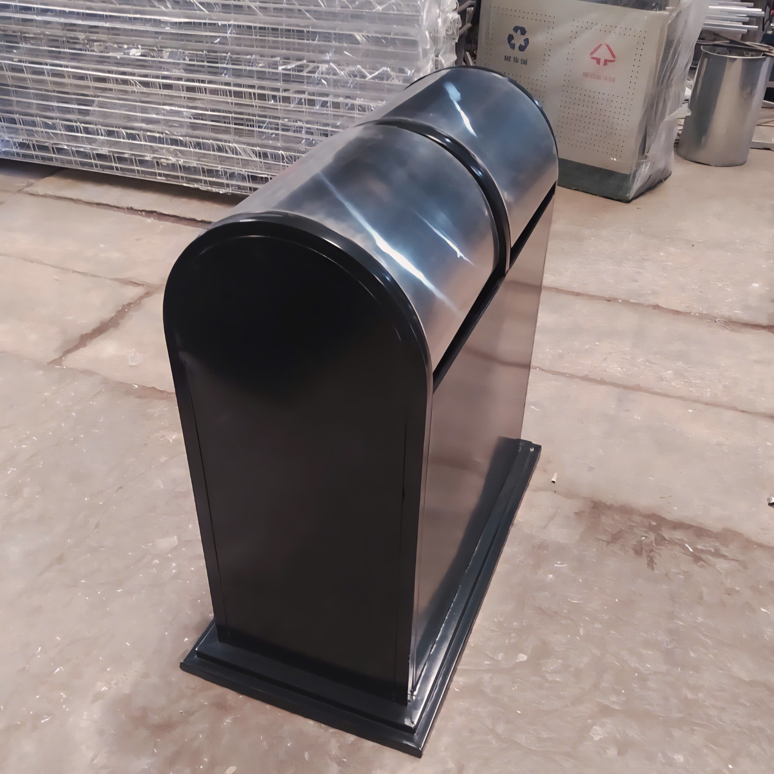 Thùng rác thép sơn tĩnh điện 2 ngăn nắp lật