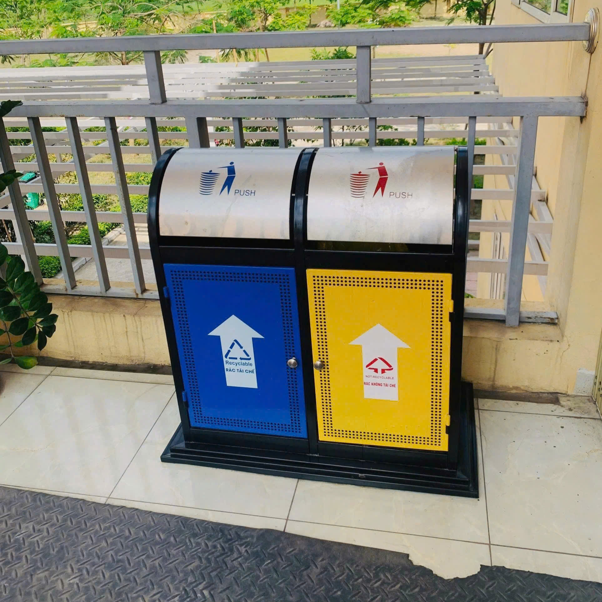 Cấu tạo: Gồm 02 ngăn riêng biệt để phân loại rác tái chế và rác thải thông thường