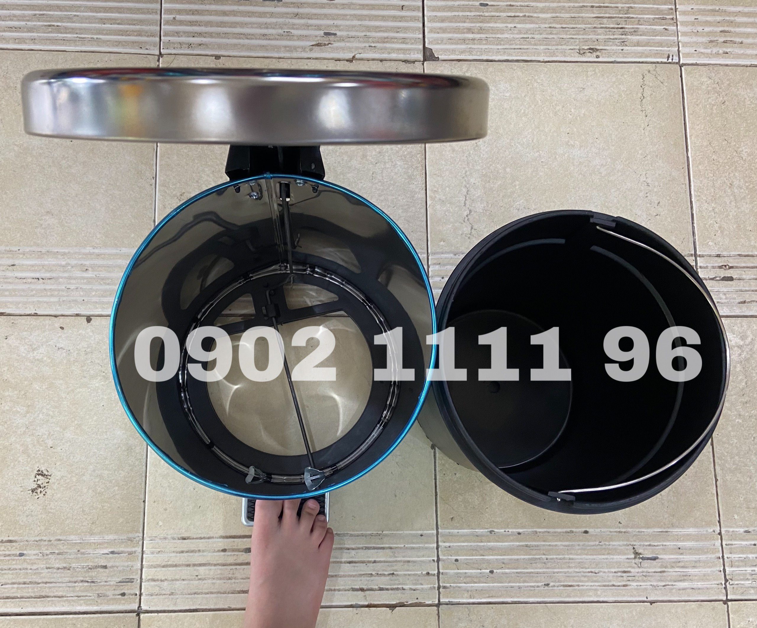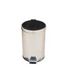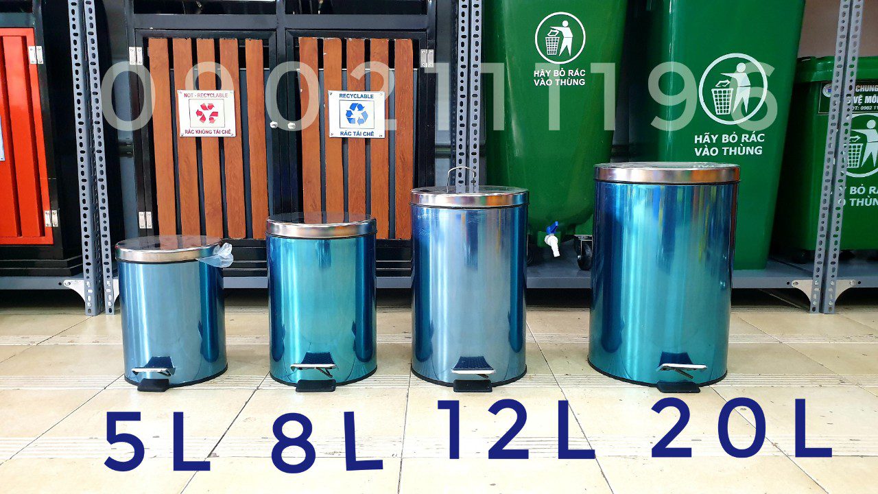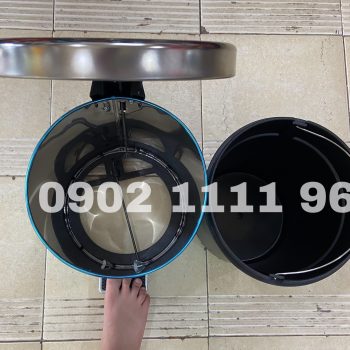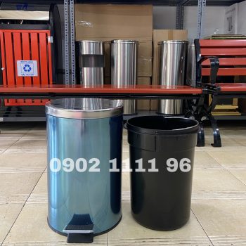 Thùng rác bằng inox 201 nên sáng bóng và sang trọng, có độ bền cao và chống rỉ sét Thùng dạng hình trụ tròn, nắp thùng rác dạng đạp chân (pedal) nên chỉ cần đạp nhẹ là mở nắp
