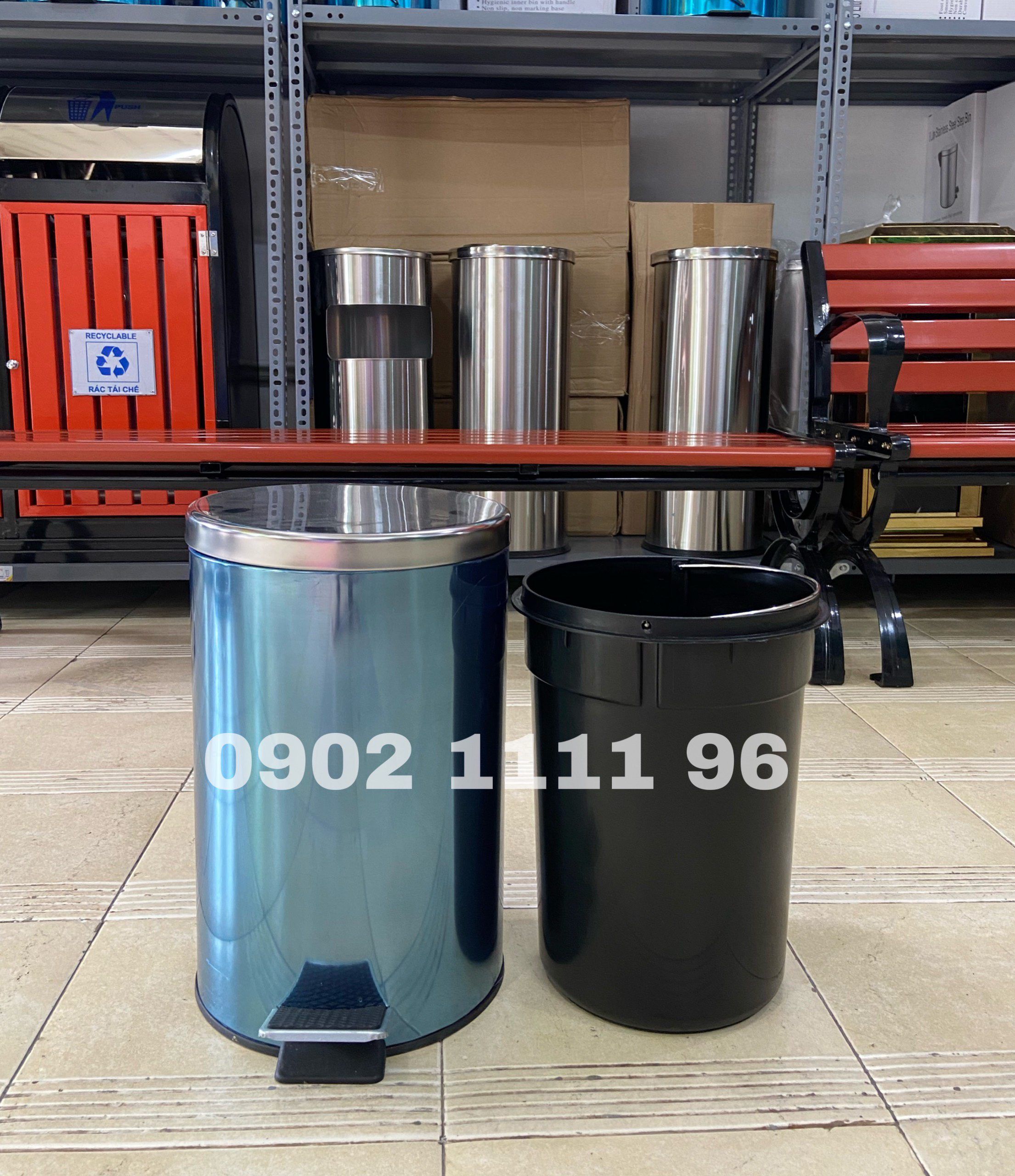 Thùng rác chia làm 2 phần: