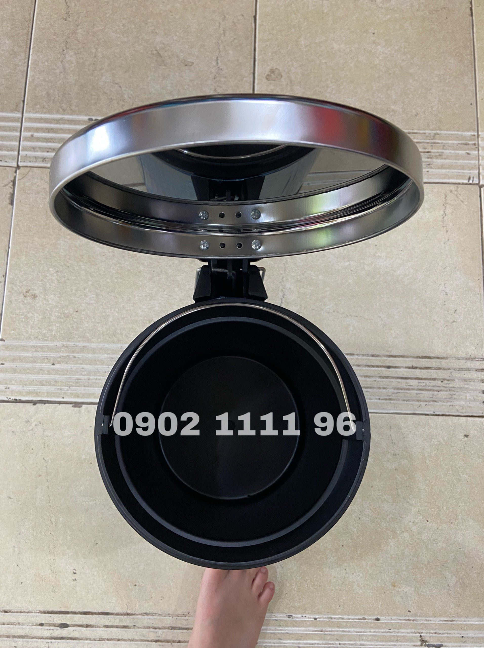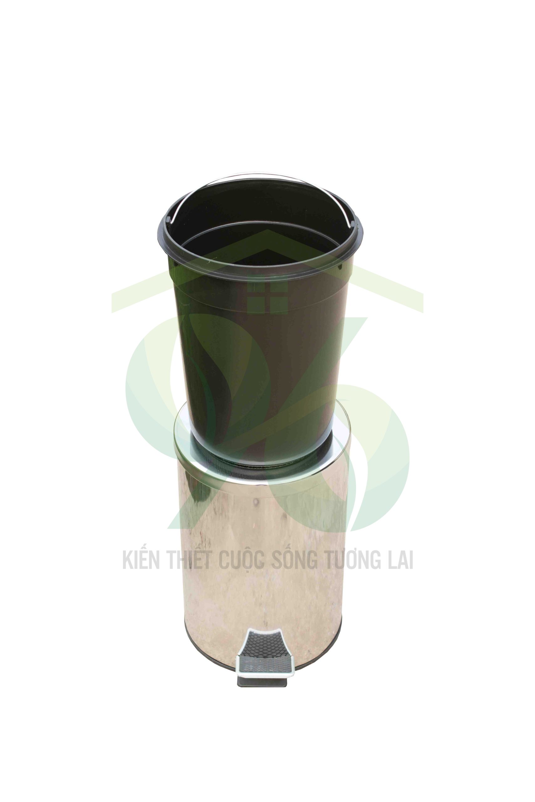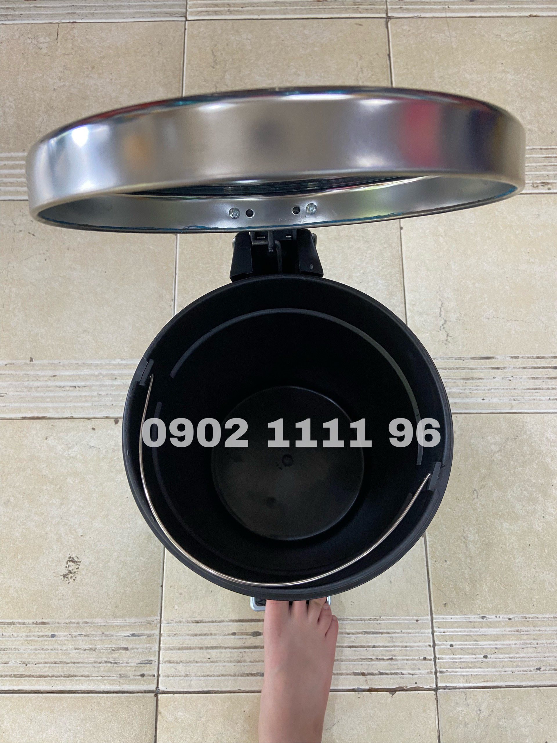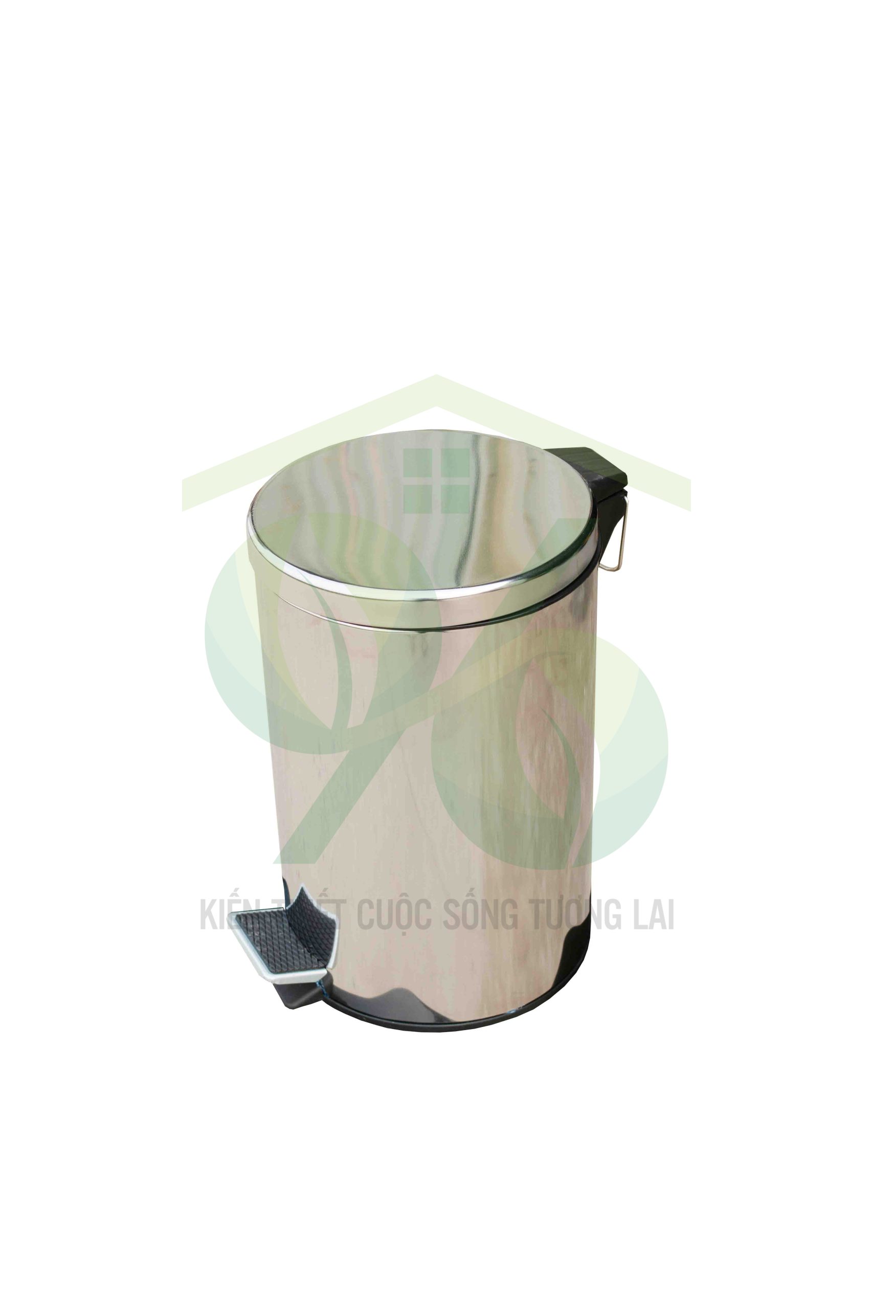 Thùng rác bằng inox 201 nên sáng bóng và sang trọng, có độ bền cao và chống rỉ sét Thùng dạng hình trụ tròn, nắp thùng rác dạng đạp chân (pedal) nên chỉ cần đạp nhẹ là mở nắp