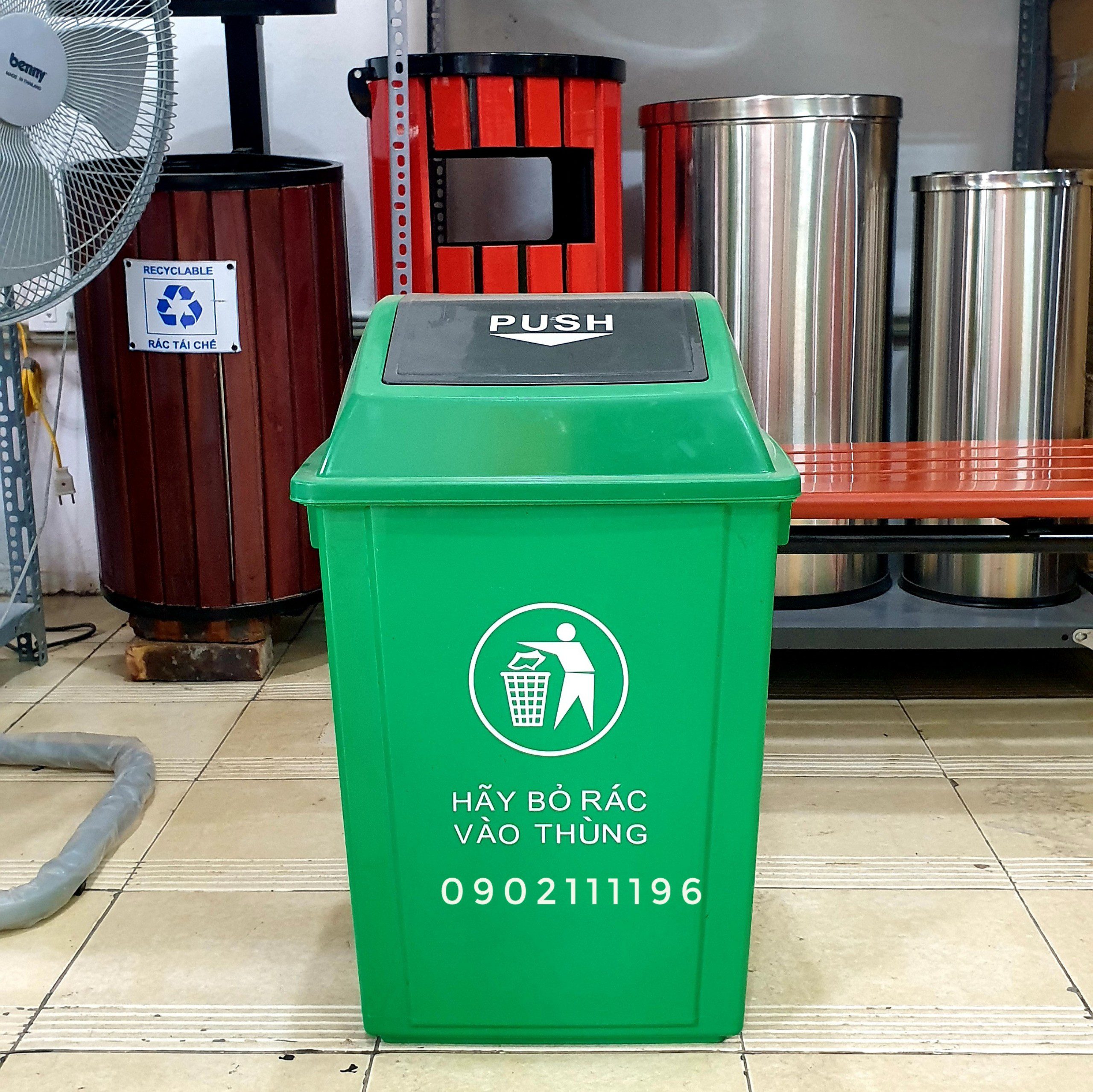 Cấu tạo: Có nắp bập bênh có thể nhấc rời nắp khỏi thùng để dễ dàng cho công tác thu gom