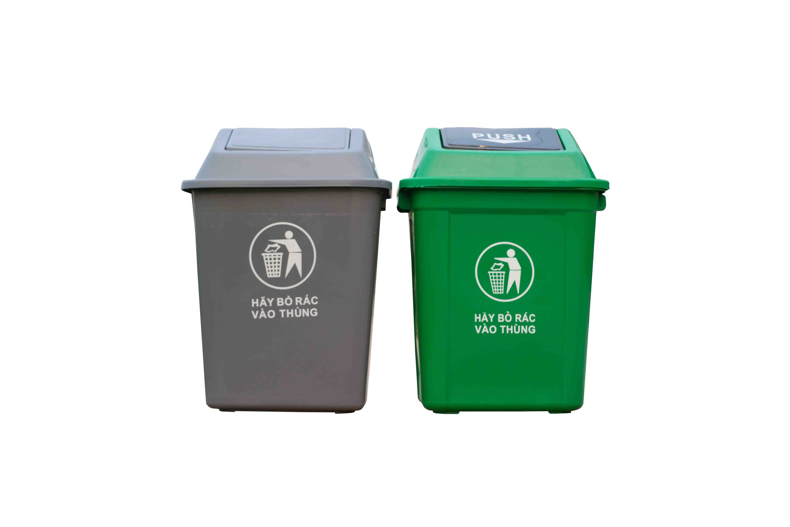 Thùng rác nhựa có nắp đậy dạng bập bênh 2 bên dễ dàng cho việc xả rác vào thùng và có thể tự động cân bằng sau khi sử dụng