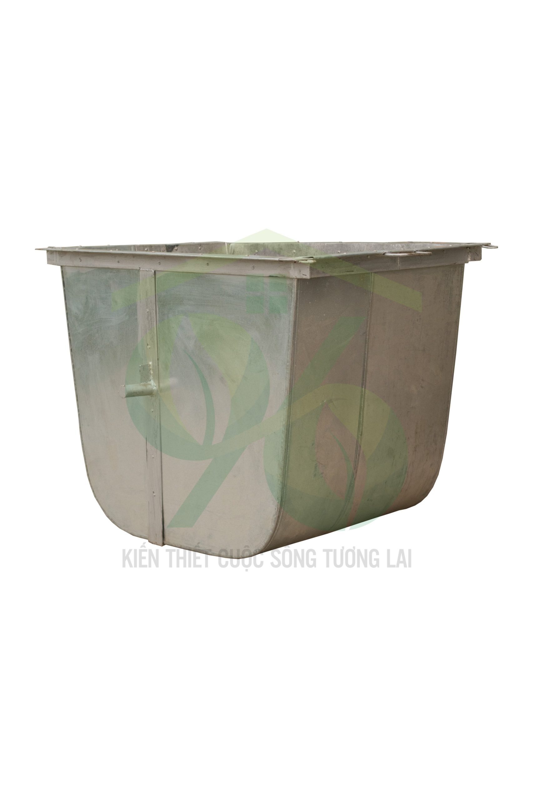 Chất liệu: thùng làm bằng tôn hoa sen sáng bóng không gỉ đay 1mm. Kích thước: thùng 500L (D)1060*(R)800*(C)830mm Biên dạng thùng chứa: Côn lượn phía đáy thùng.