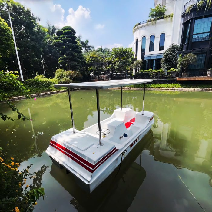 Kích thước 3600x1420mm, thuyền ngồi được 4 người lớn, thiết kế hiện đại, dễ vận hành. Sản xuất từ vật liệu composite cao cấp, sản phẩm có ưu điểm nhẹ, bền, chống ăn mòn, không thấm nước và phù hợp cả khi sử dụng ở sông, hồ hay nước mặn.