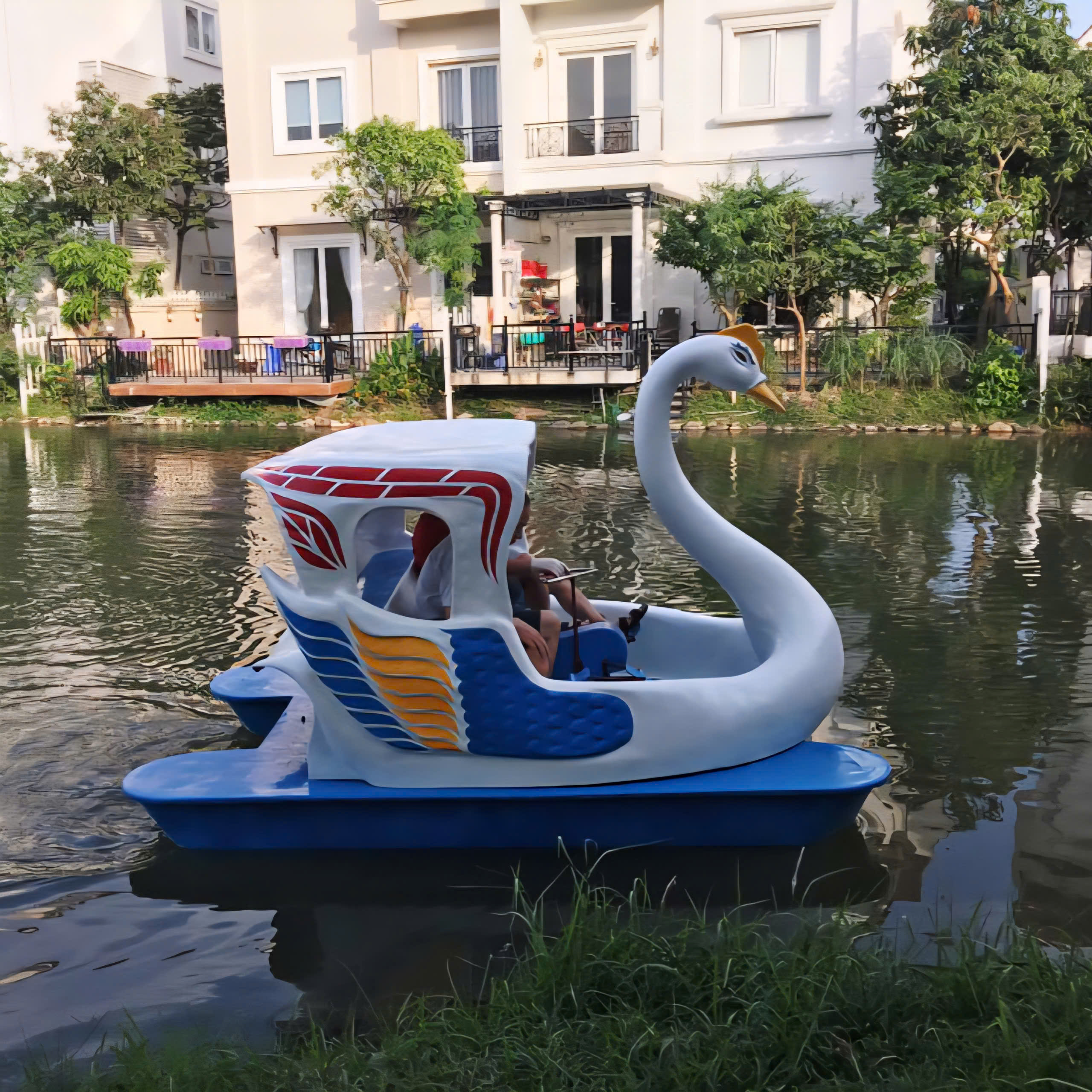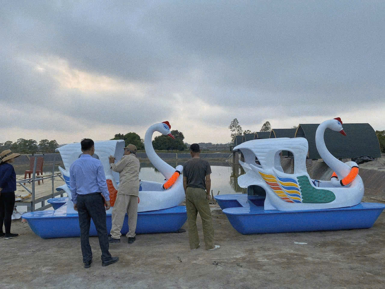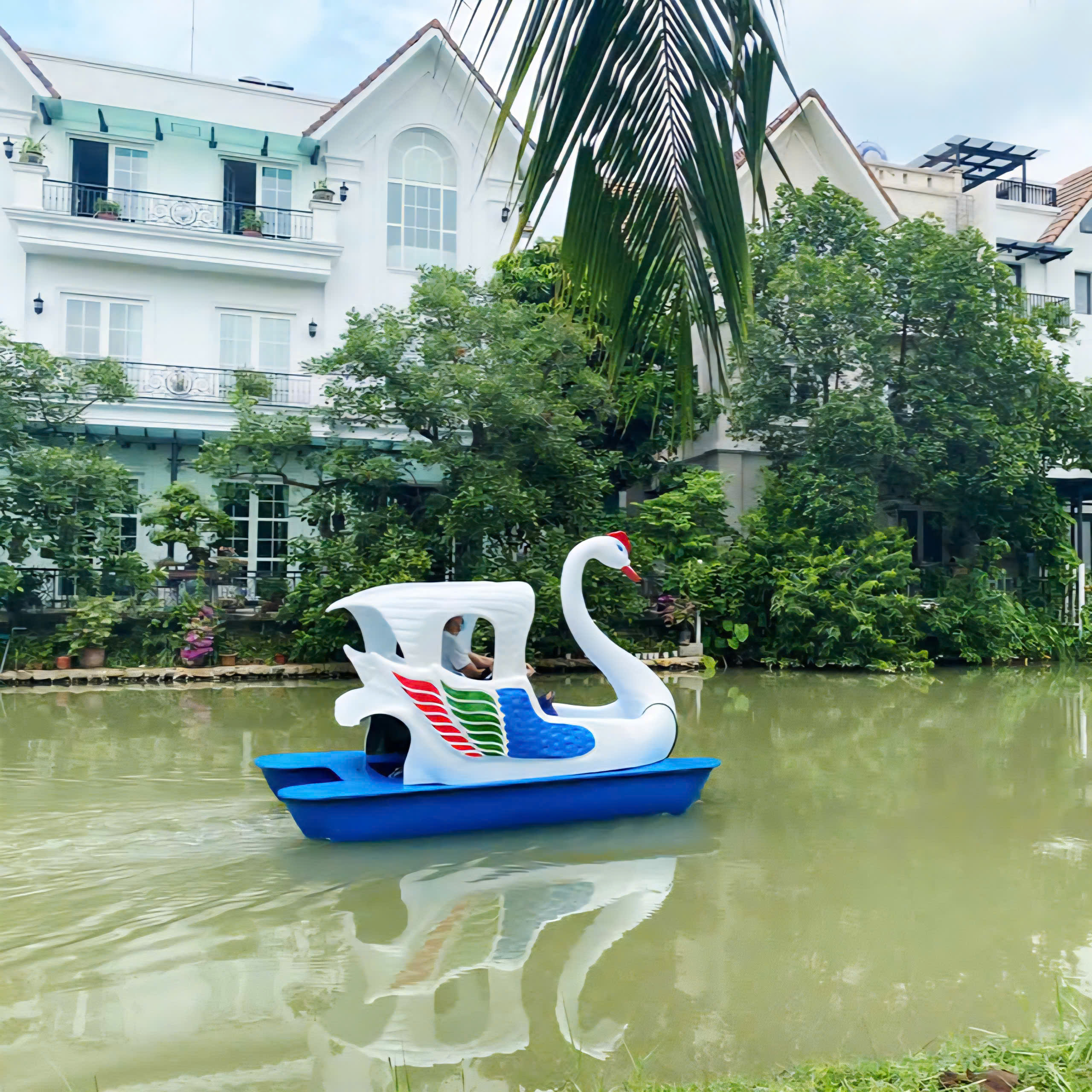 25 Th8 Thiên nga đạp nước composite Loại đạp chân: 2 người đạp Số chỗ ngồi: 2 người lớn và 2 trẻ em Kích thước: DxR: 3600× 1800(mm) Chất liệu: Nhựa Composite Bảo hành: 24 tháng Vui lòng đánh giá Thuyền composite có 4 chỗ ngồi Thùng rác nhựa công nghiệp dung tích 660L