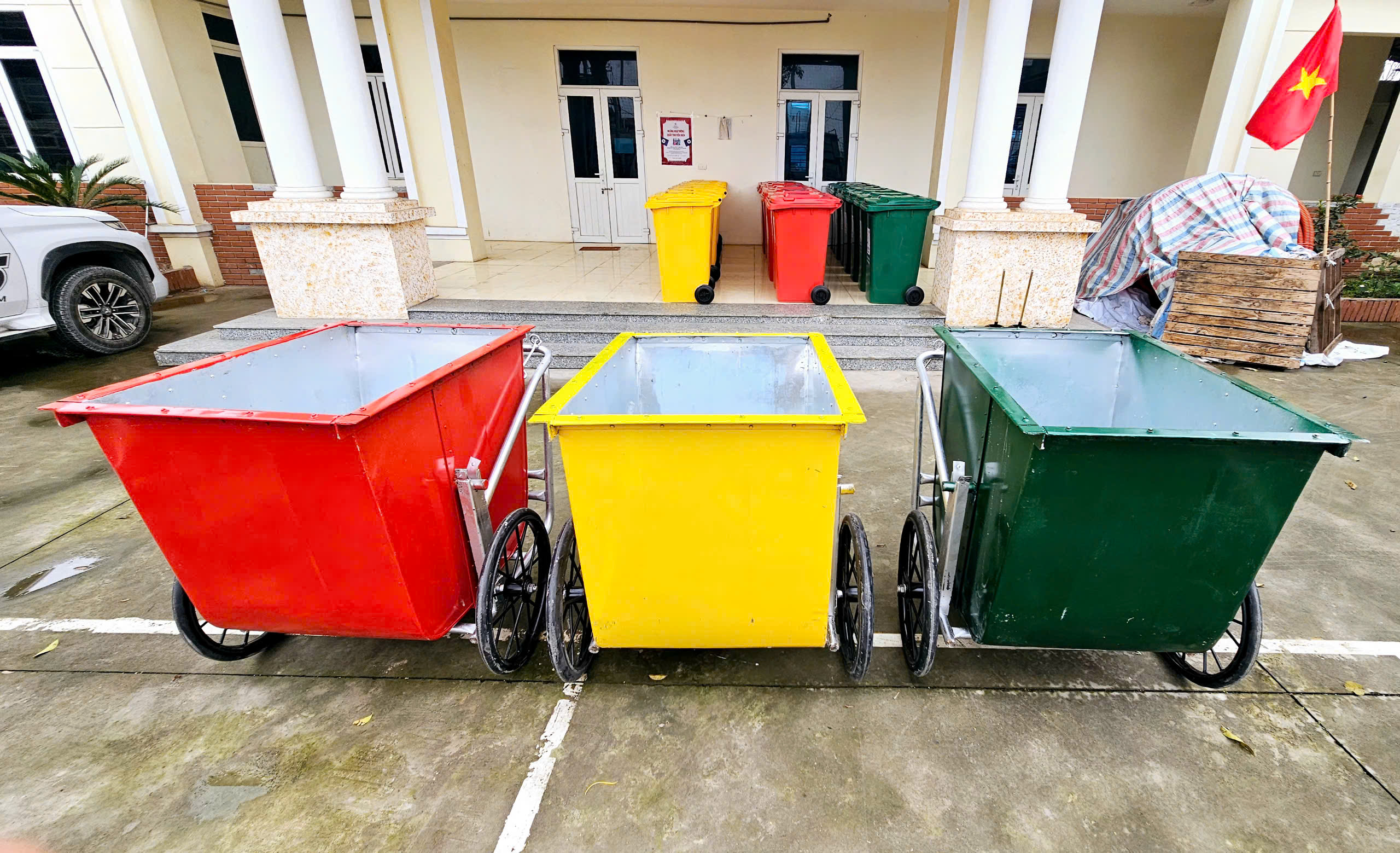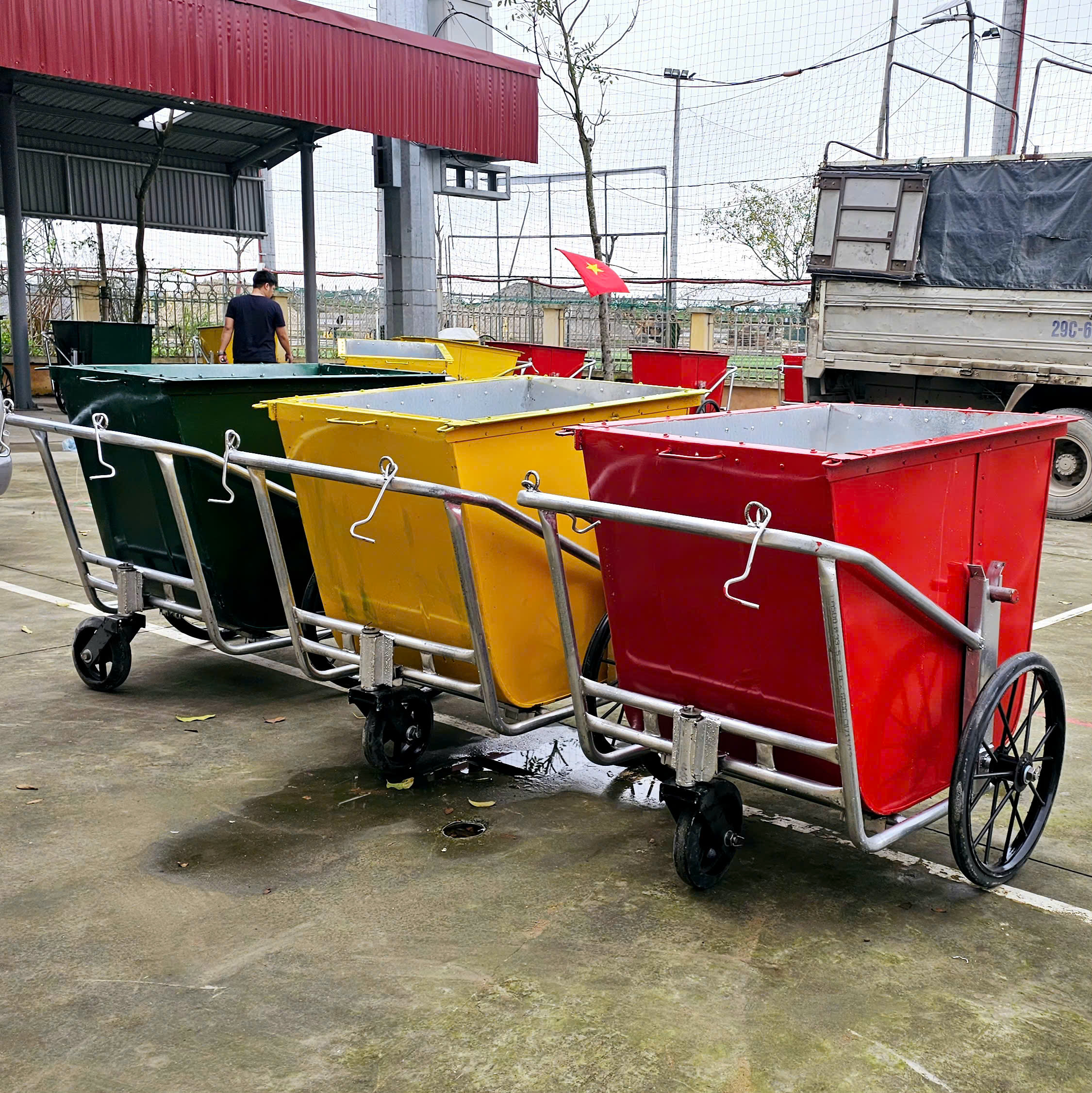 23 Th3 Vui lòng đánh giá Thùng rác nhựa 120L có giậm chân Cung cấp xe gom rác dung tích 400L bằng tôn dày 1 ly cho đơn vị vệ sinh môi trường
