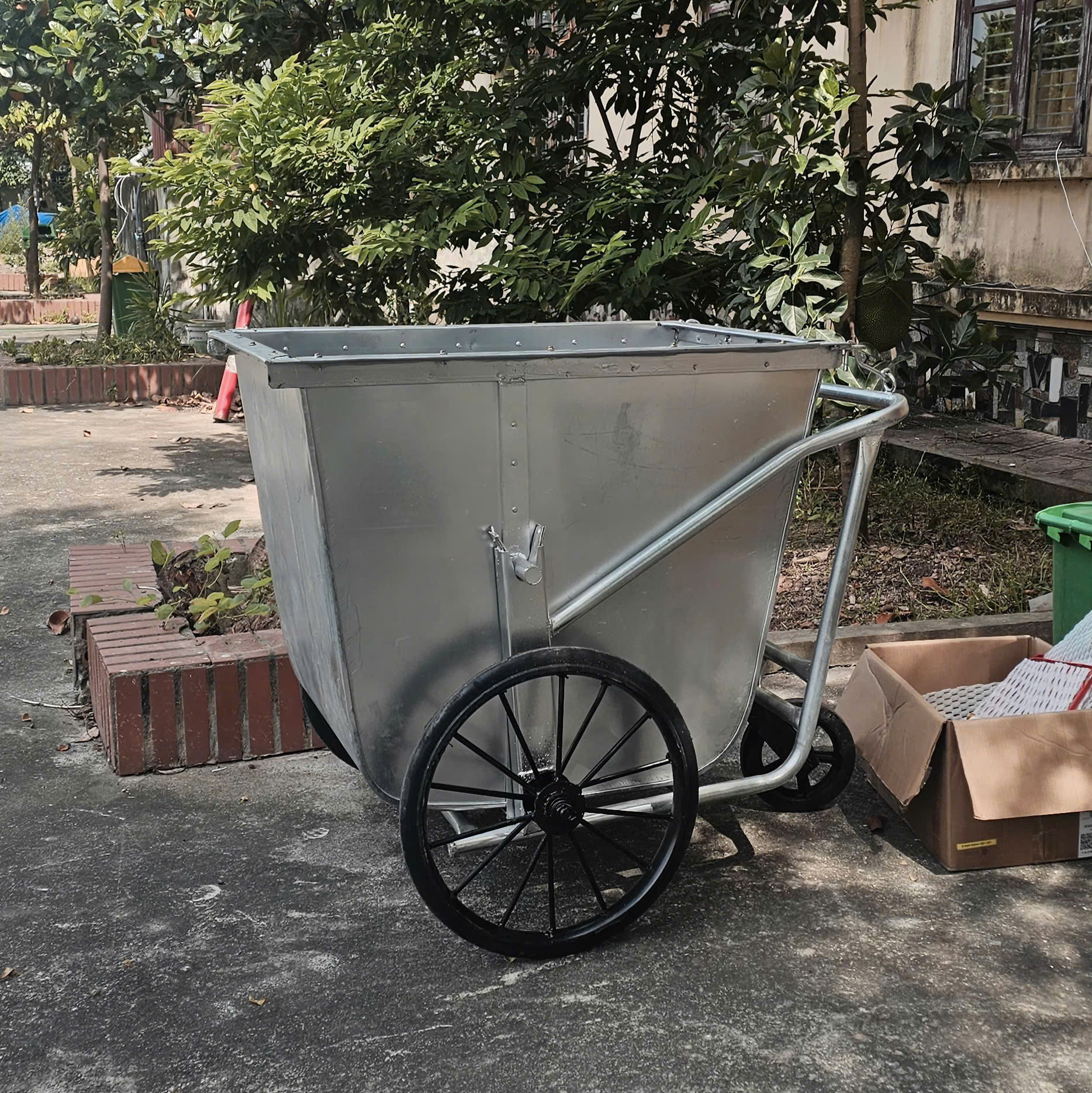 Xe gom rác tôn dung tích 500L dày 1 ly