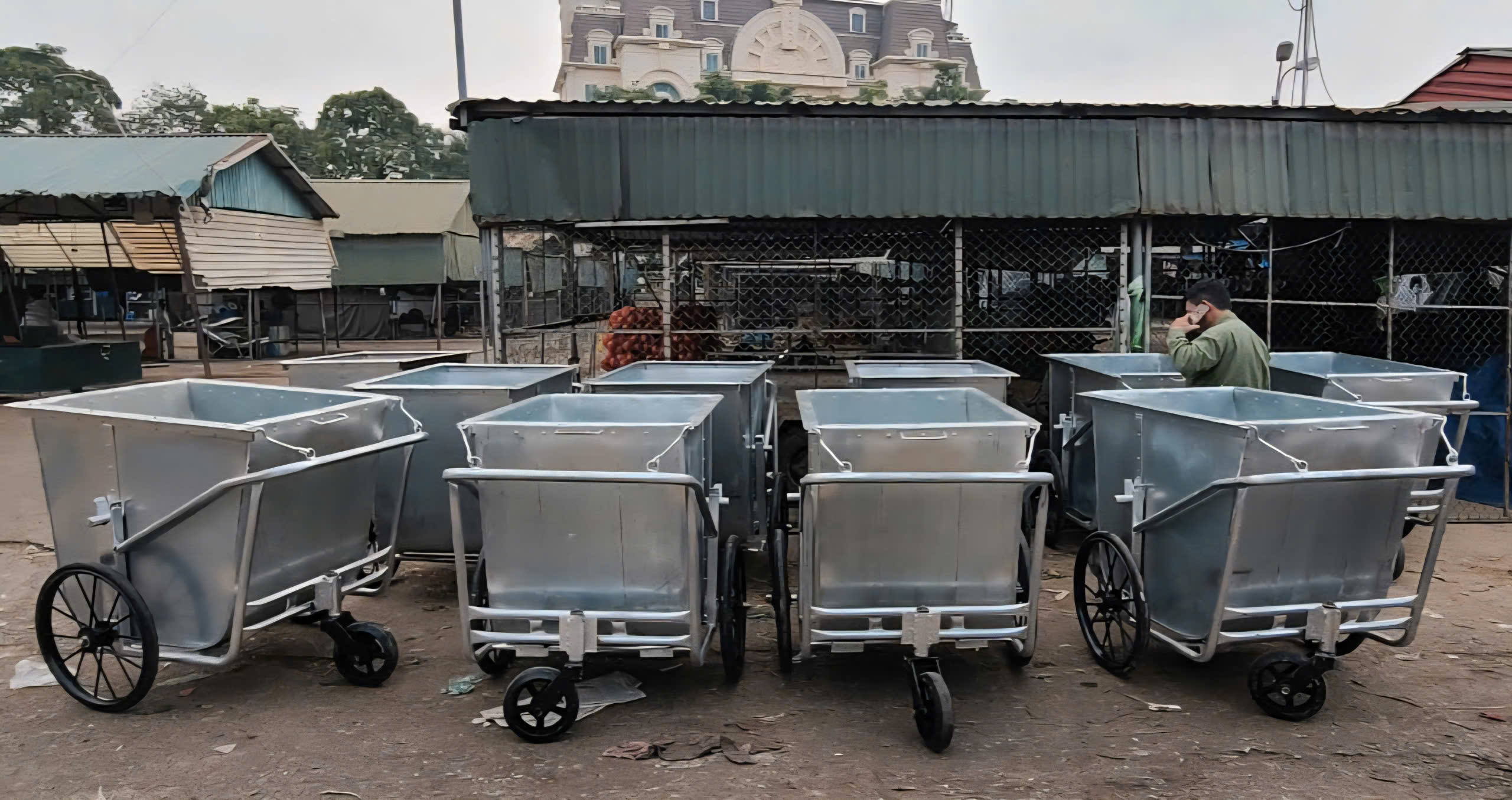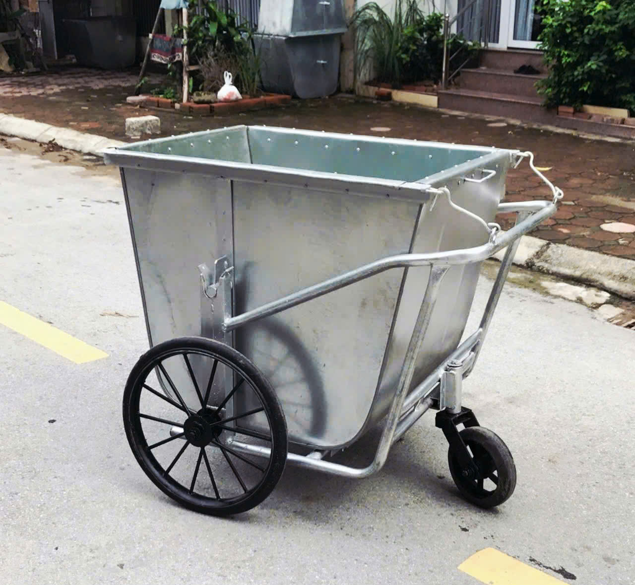 Xe gom rác tôn dung tích 500L dày 1 ly