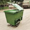 Thiết kế chuyên dụng như xe gom rác 3 bánh dễ di chuyển trên địa hình phức tạp, xe chở rác màu xanh thân thiện với môi trường và nhận diện dễ dàng.