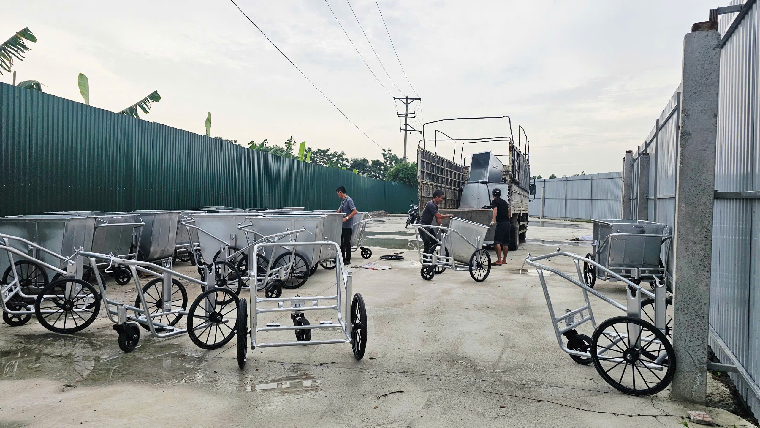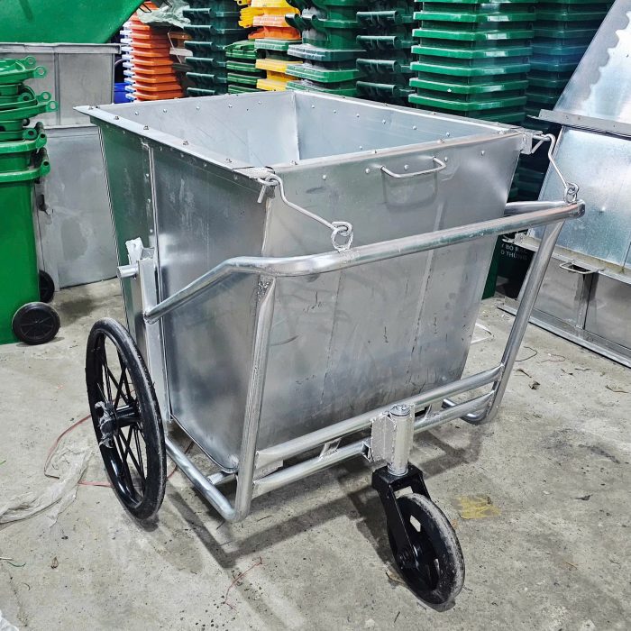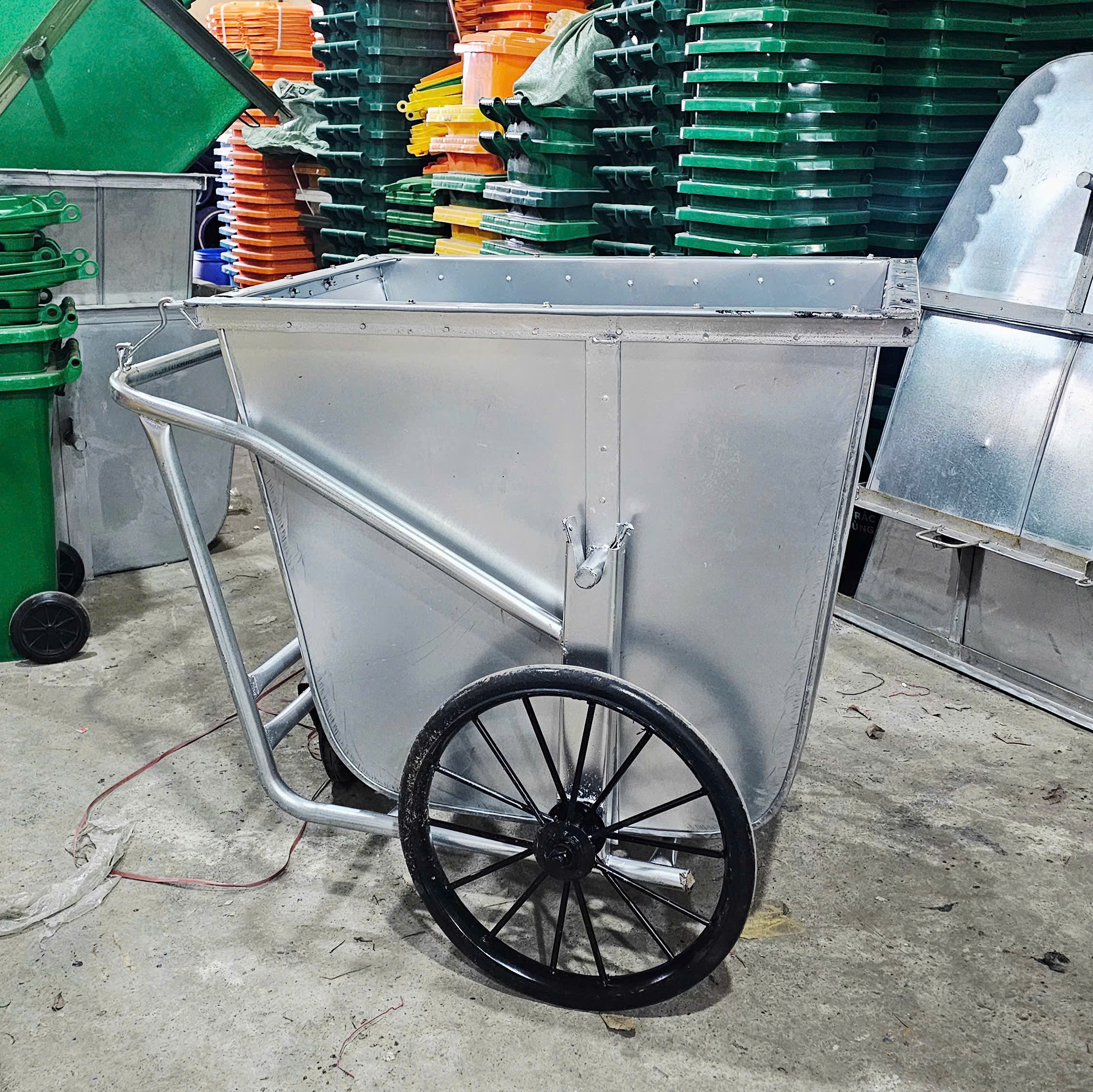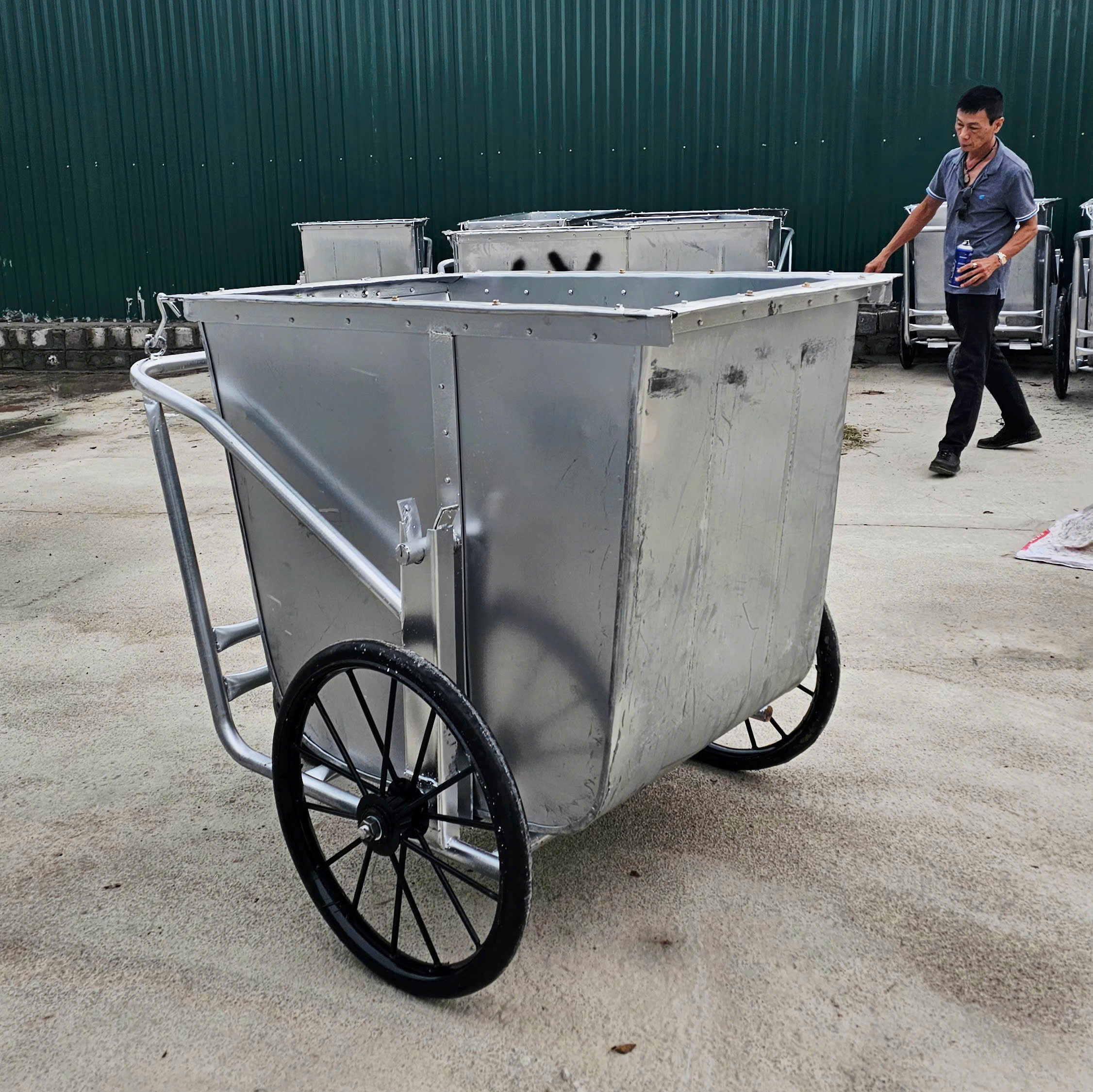 Xe gom rác tôn dung tích 500L dày 1 ly